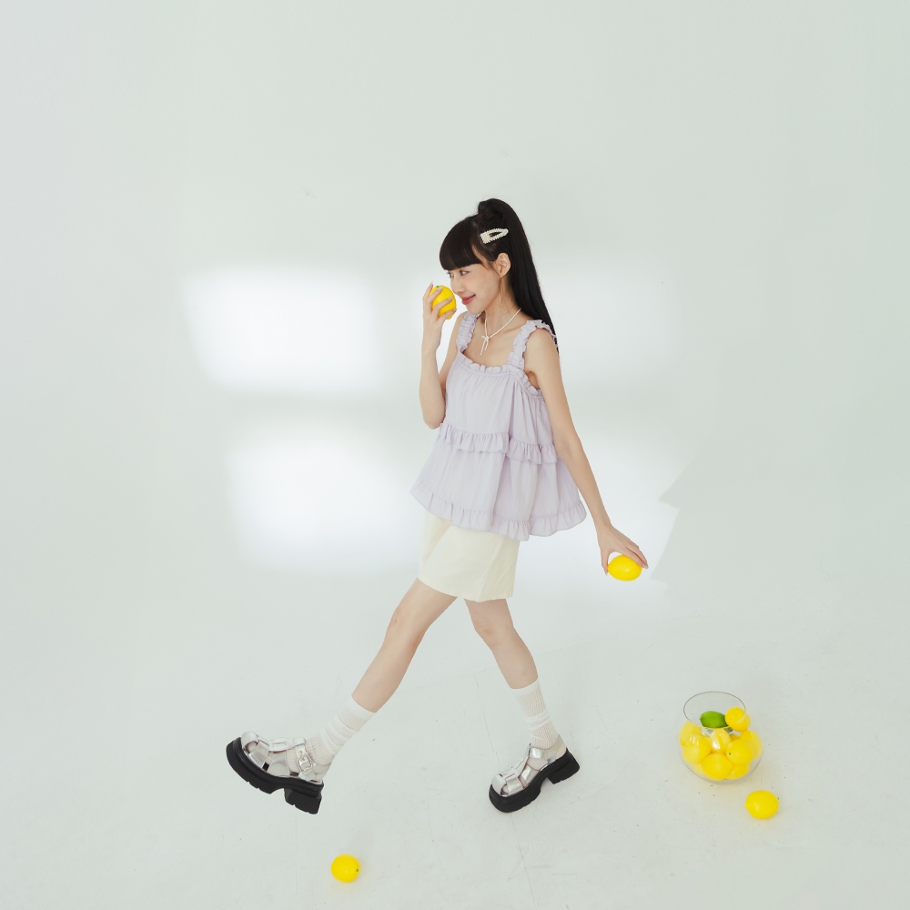 QUEENSHOP_ S 女裝 綁帶多層次蛋糕紗罩衫背心 三色售 現+預 【01098644】黑|灰|淺杏Tanks & CamisolesQUEENSHOP
