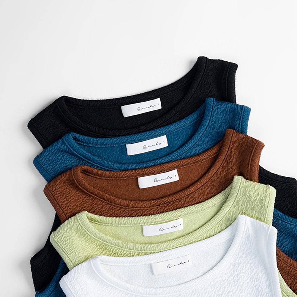 QUEENSHOP_ S 女裝 立體紋理素面削肩背心 五色售 現+預 【01150441】黑|白|藍|綠|咖啡Tanks & CamisolesQUEENSHOP