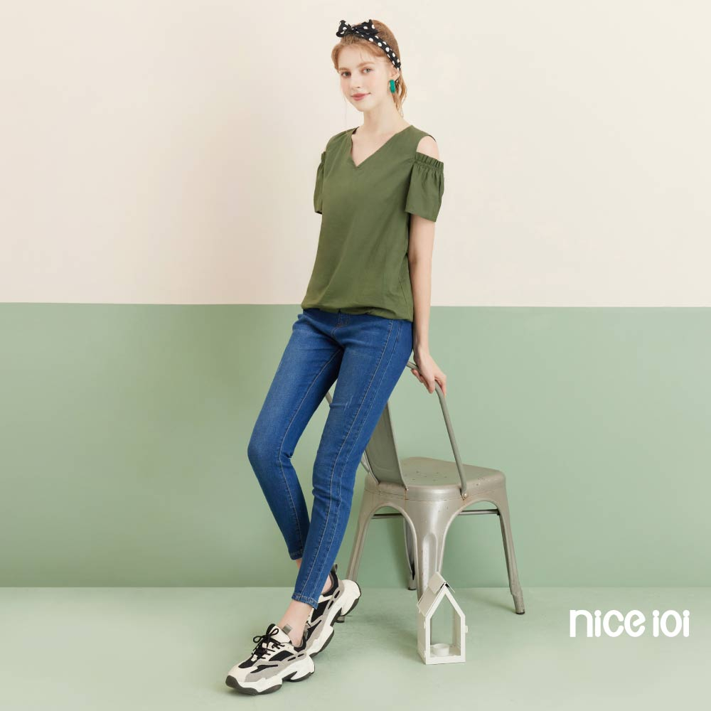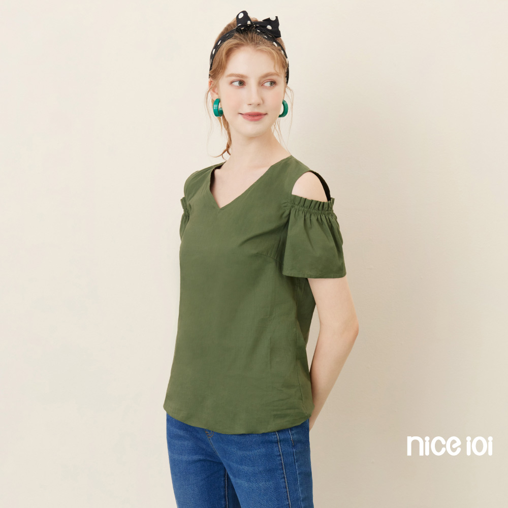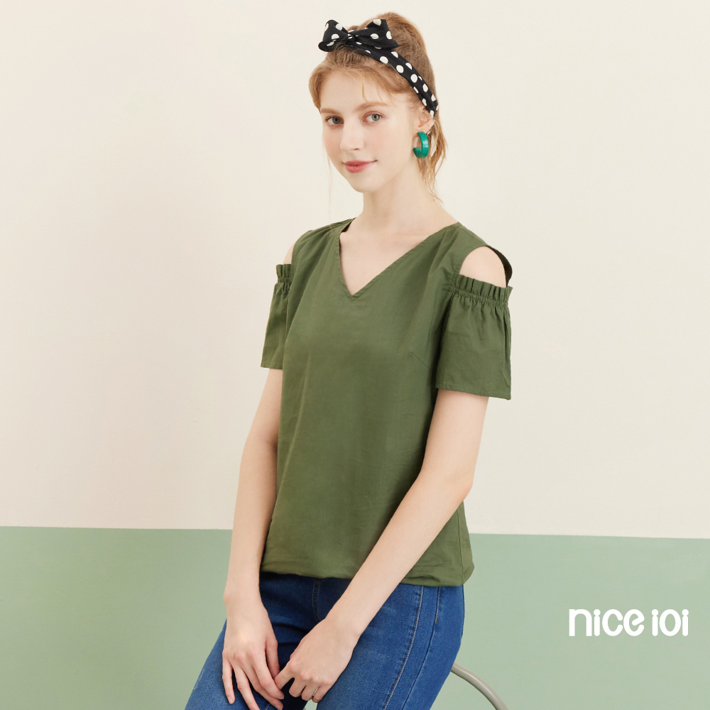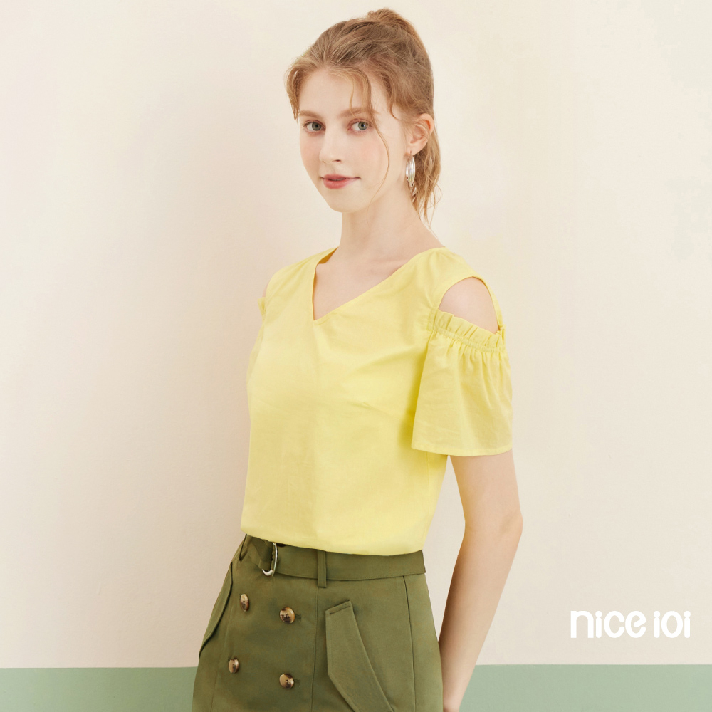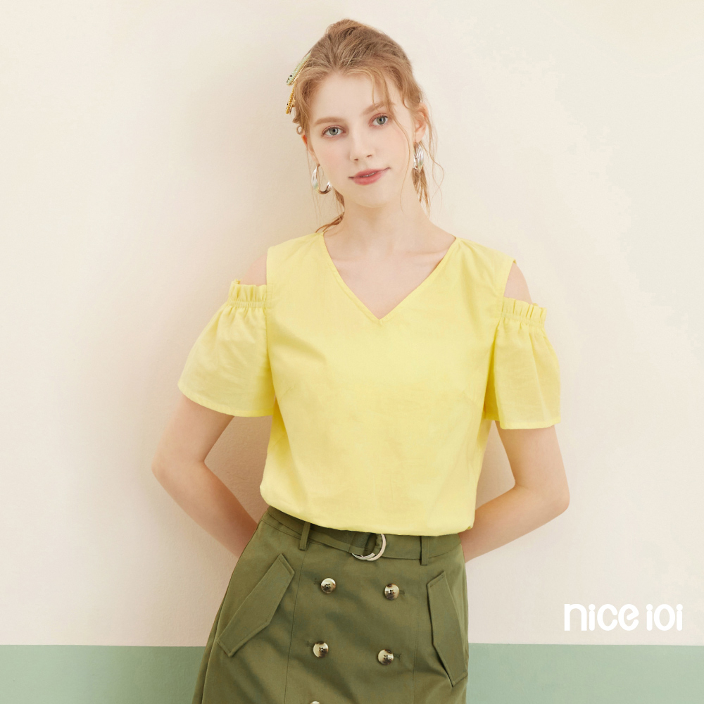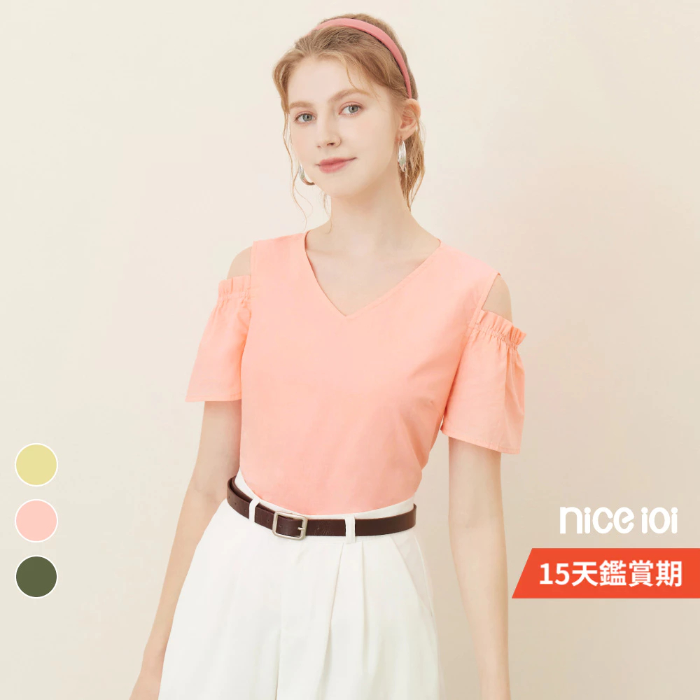 niceioi【特惠】 溫柔荷葉露肩棉質上衣 (共3色)V領上衣 露肩上衣 荷葉上衣 休閒 女裝粉紅,XL|黃,S|黃,M|黃,L|黃,XL|綠,S|粉紅,M|粉紅,L|綠,M|綠,XL|粉紅,S|綠,LT-shirtsniceioi 官方旗艦店