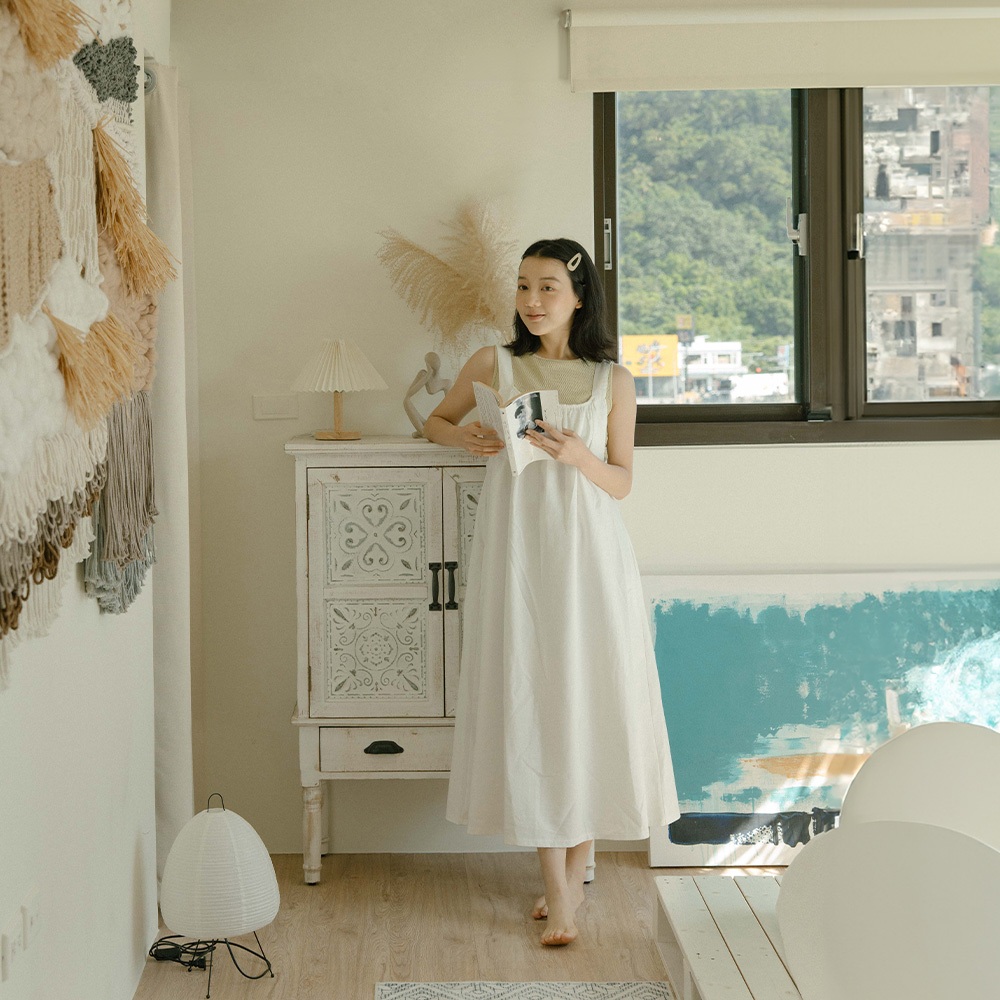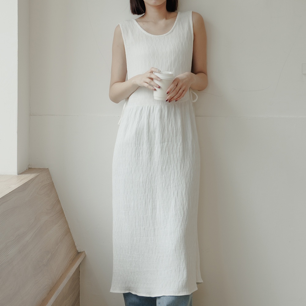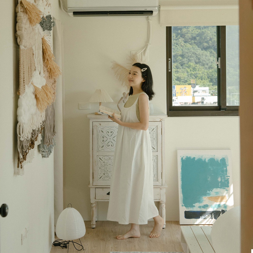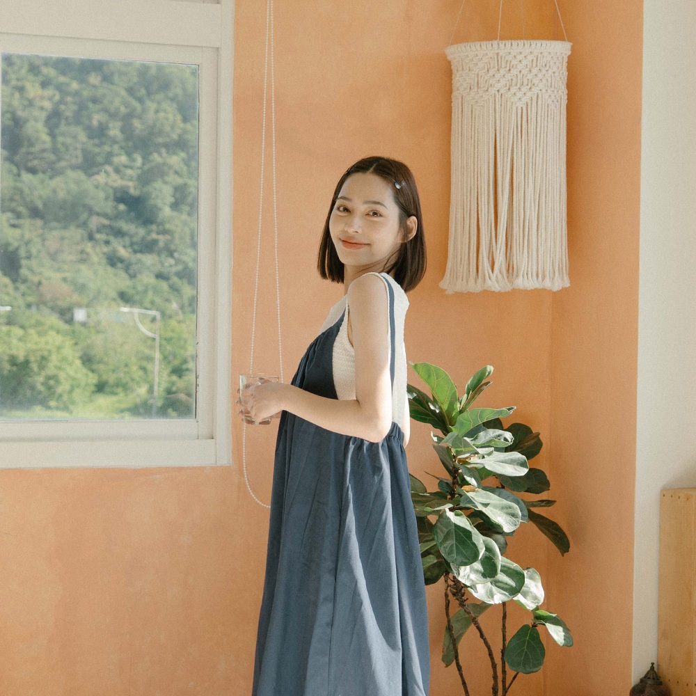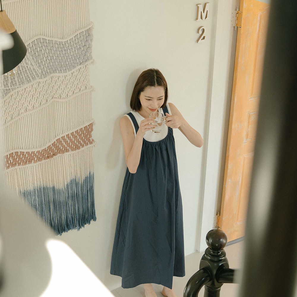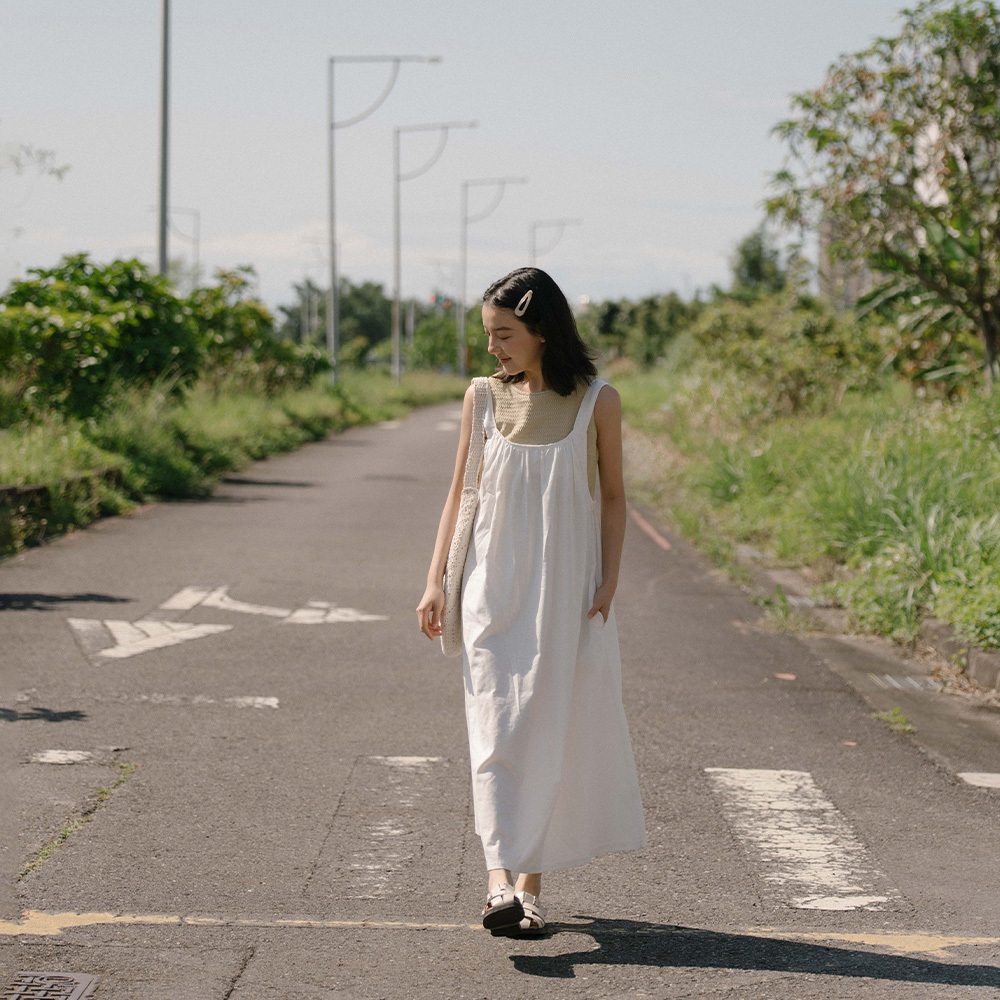 QUEENSHOP_ S 女裝 棉麻抓皺吊帶傘襬洋裝 兩色售 現+預 【01087102】白|深藍QUEENSHOP