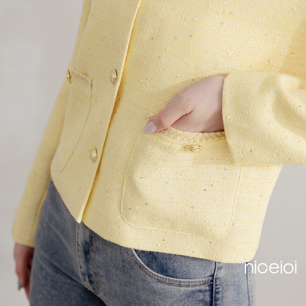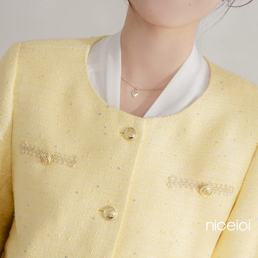 niceioi【特惠】小香風外套 外套 毛呢外套 黃色 [晴光小香細閃織紋外套] 女裝小香風毛呢外套-黃色,S|小香風毛呢外套-黃色,M|小香風毛呢外套-黃色,L|小香風毛呢外套-黃色,XLBlazersniceioi 官方旗艦店