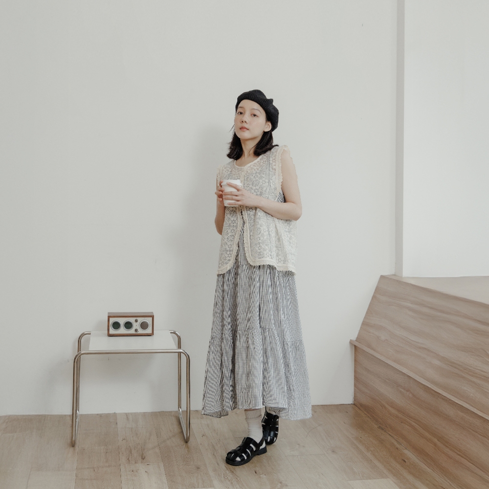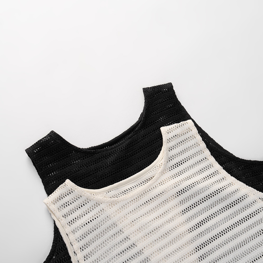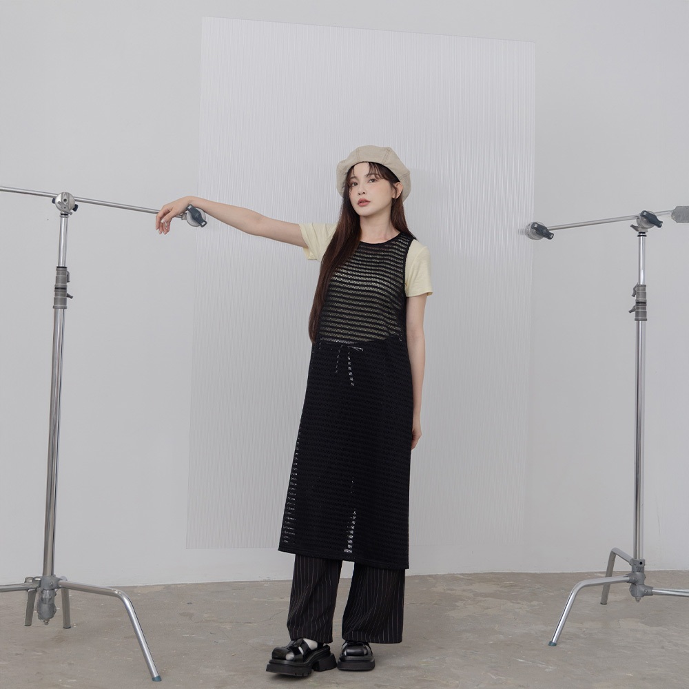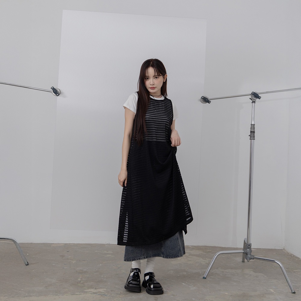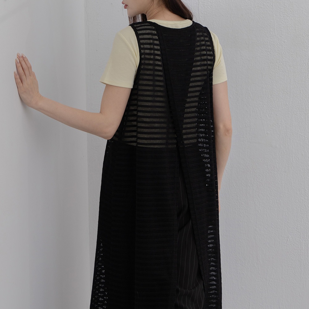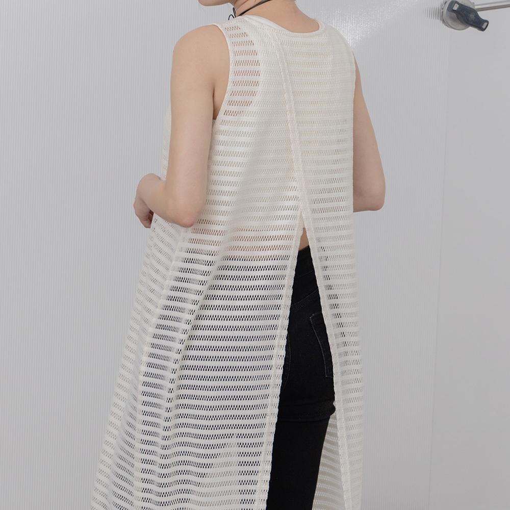QUEENSHOP_ S 女裝 橫紋鏤空後開衩長版罩衫背心 兩色售 現+預 【01098989】黑|杏OthersQUEENSHOP