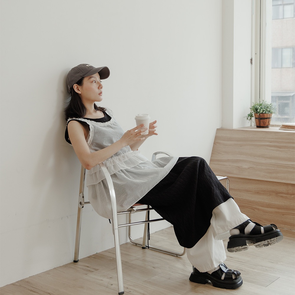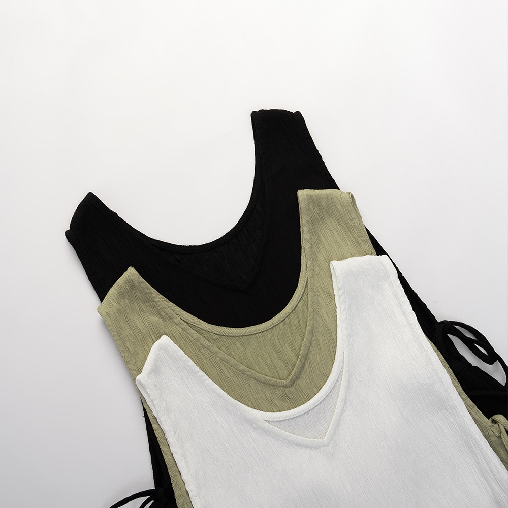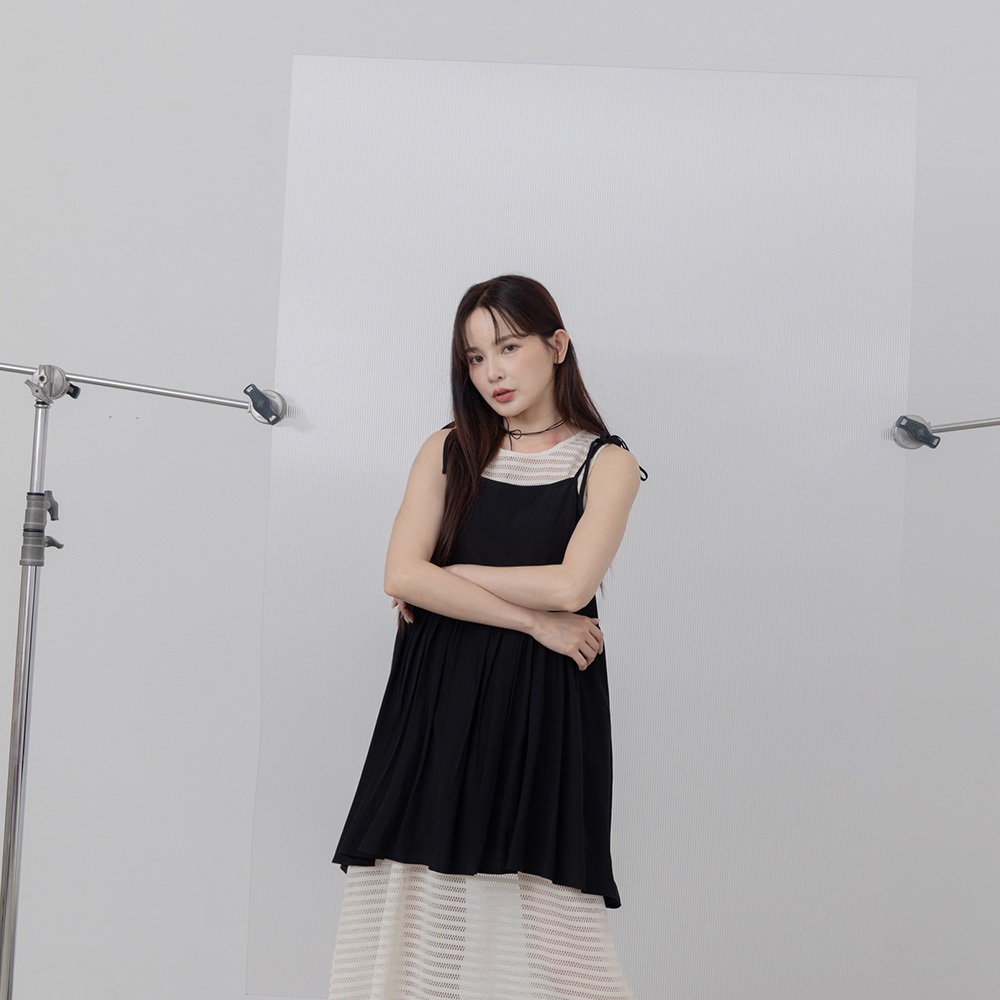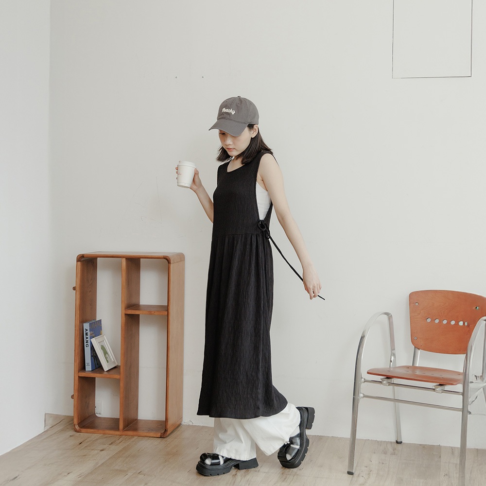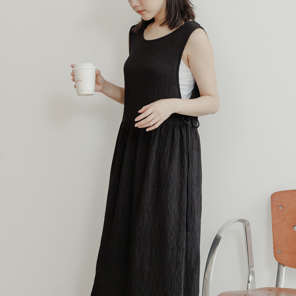 QUEENSHOP_ S 女裝 皺皺紋理側綁帶兩穿罩衫洋裝 三色售 現+預 【01099016】黑|白|綠QUEENSHOP