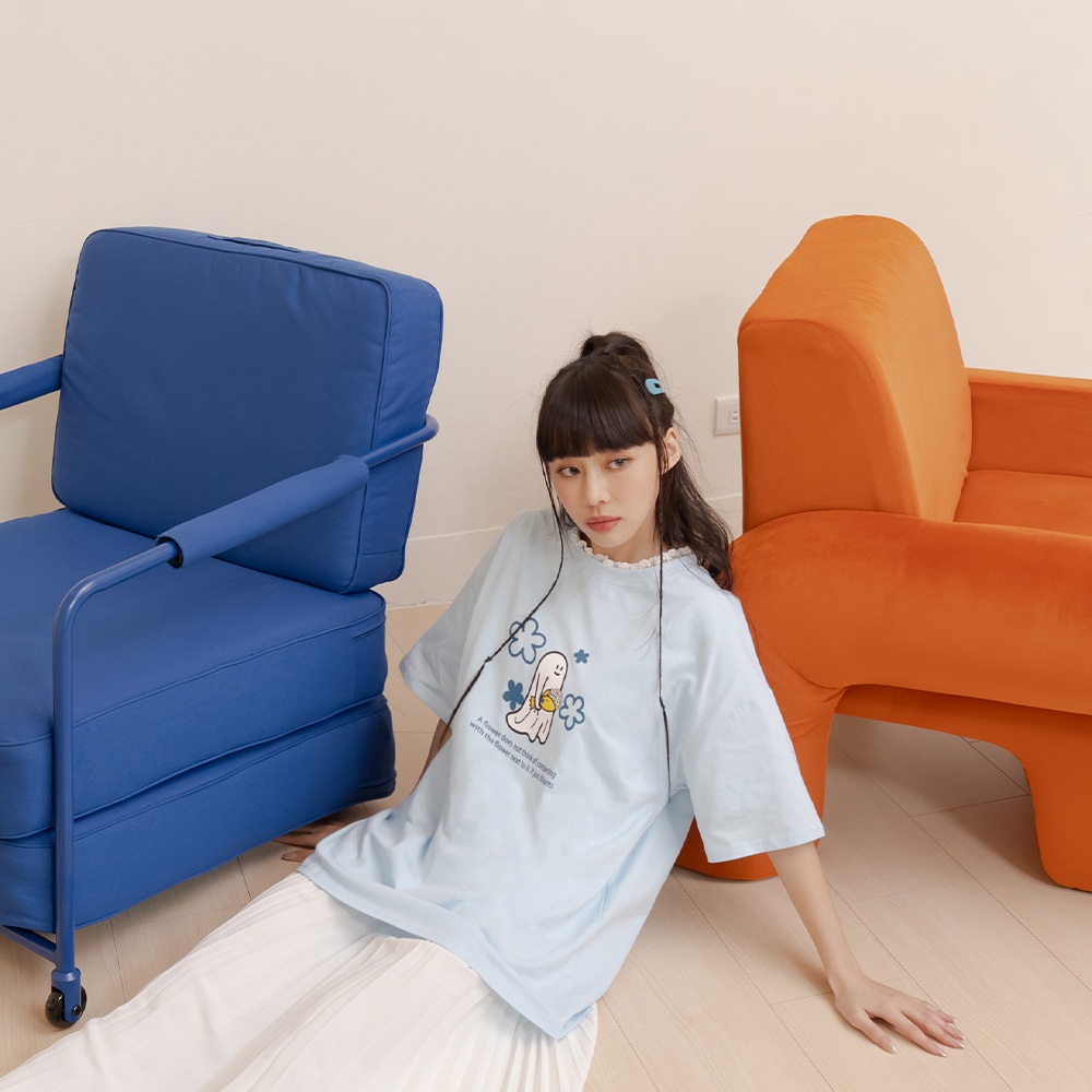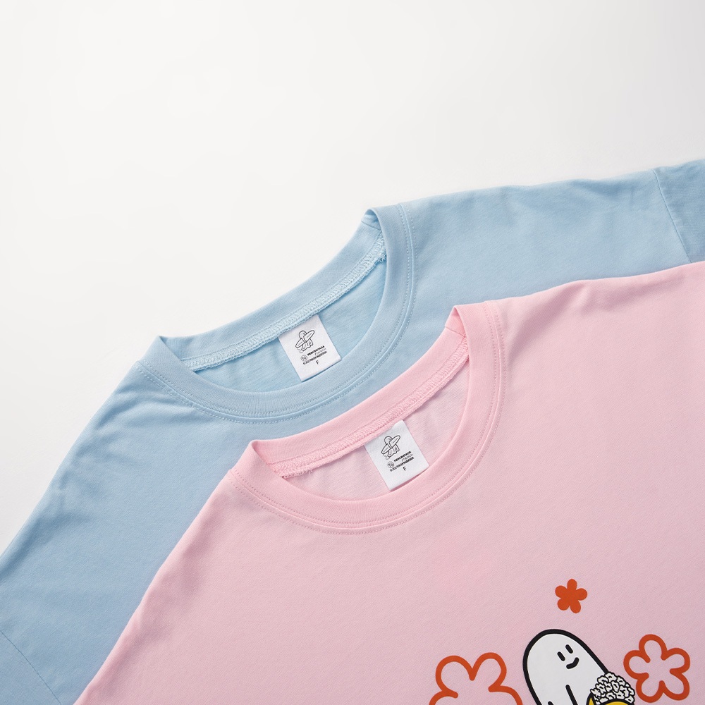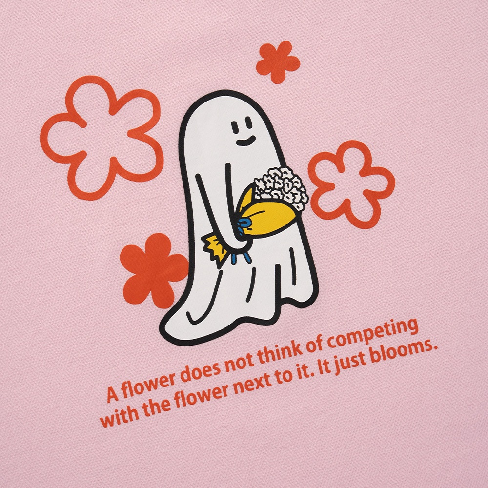 QUEENSHOP_ S 女裝 短袖 P/D幽靈 拿花幽靈印圖寬版短袖上衣 兩色售 現+預 【01190256】粉|藍T-shirtsQUEENSHOP
