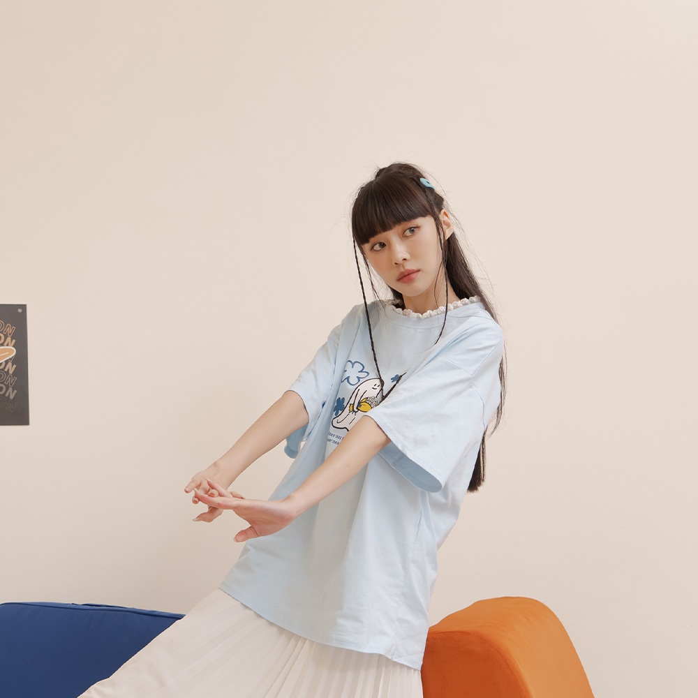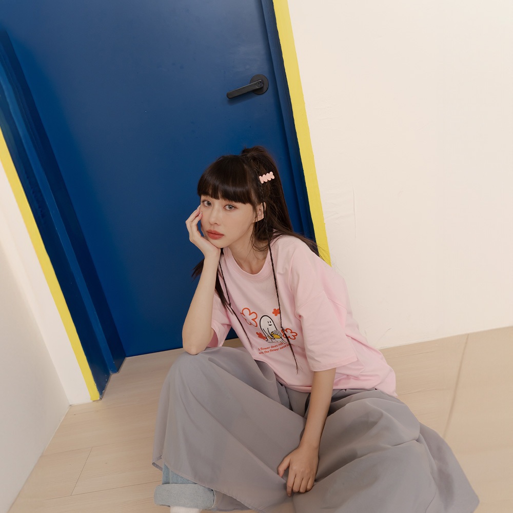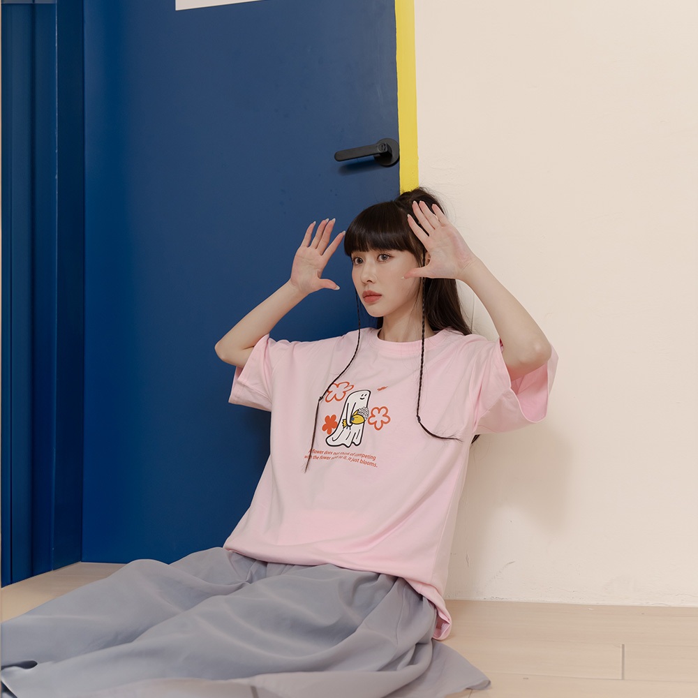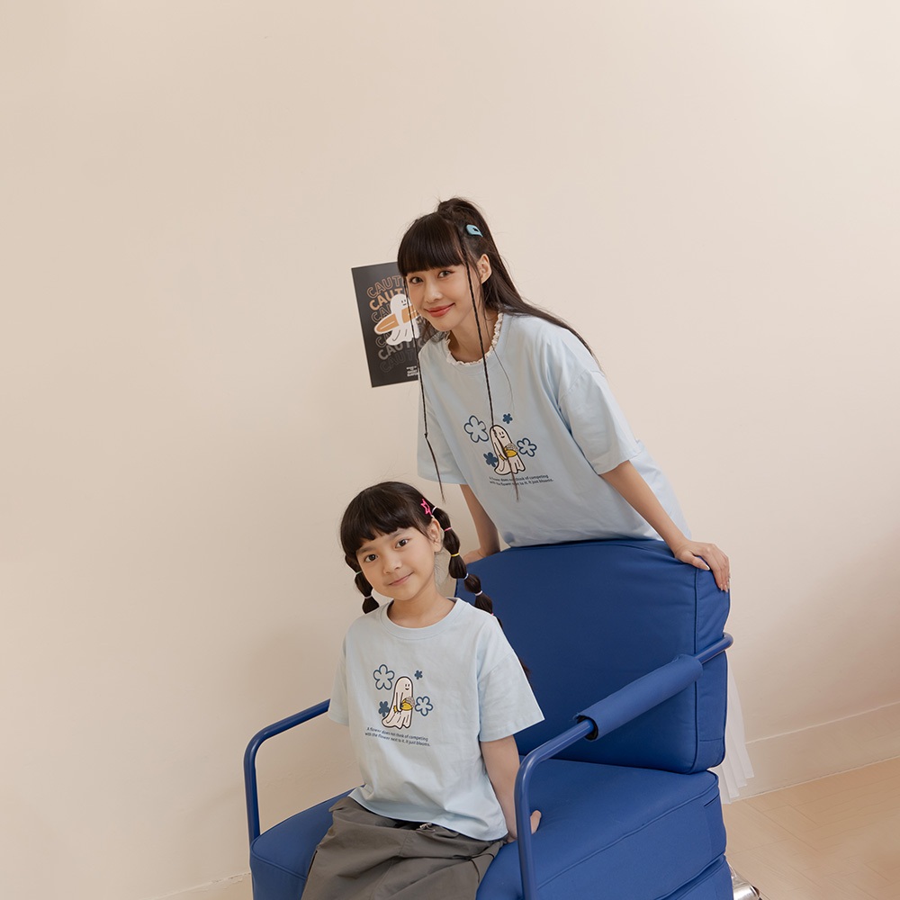 QUEENSHOP_ S 女裝 短袖 P/D幽靈 拿花幽靈印圖寬版短袖上衣 兩色售 現+預 【01190256】粉|藍T-shirtsQUEENSHOP