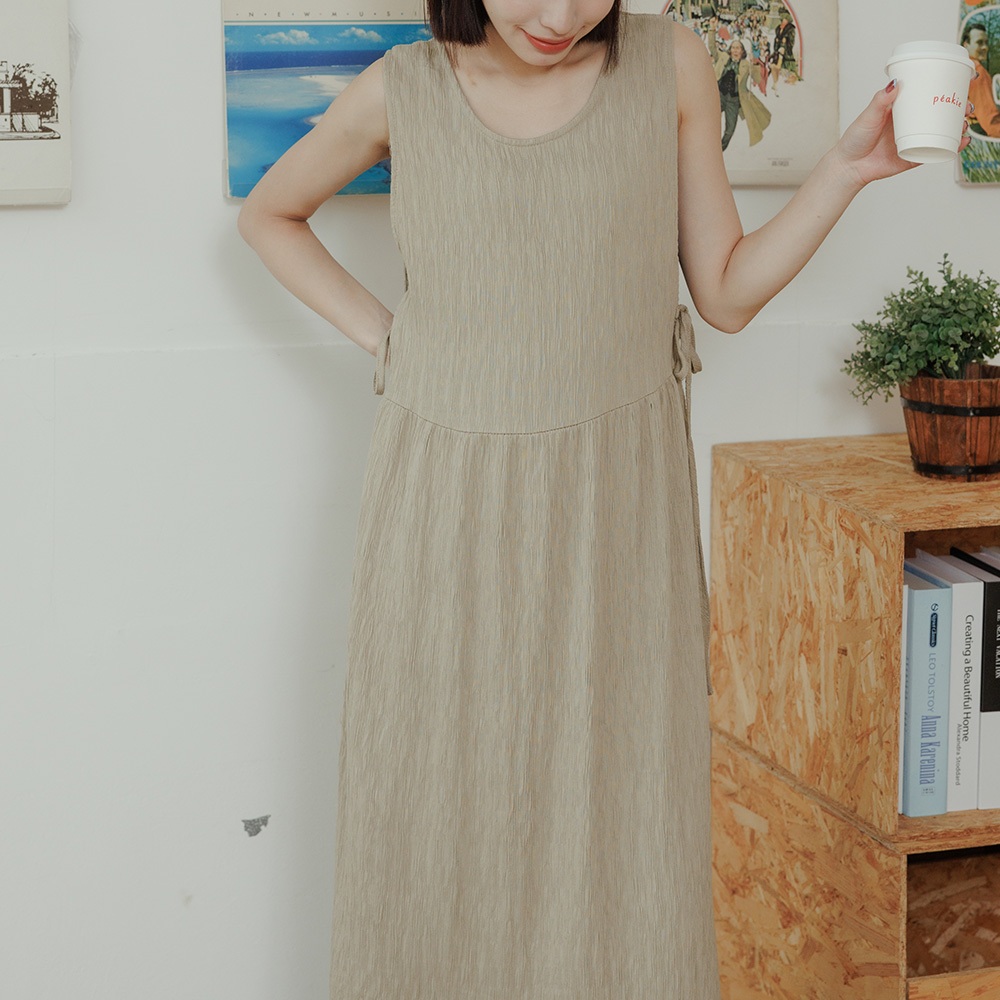 QUEENSHOP_ S 女裝 棉麻抓皺吊帶傘襬洋裝 兩色售 現+預 【01087102】