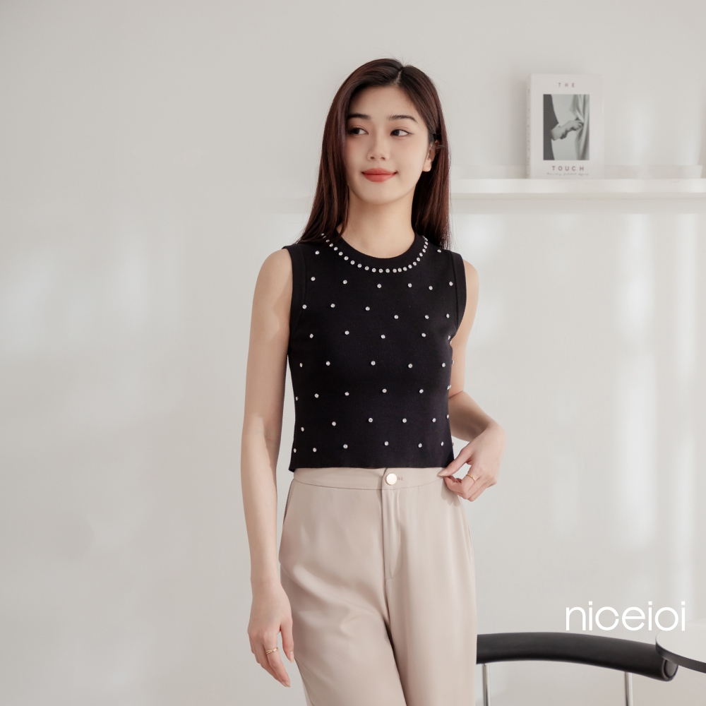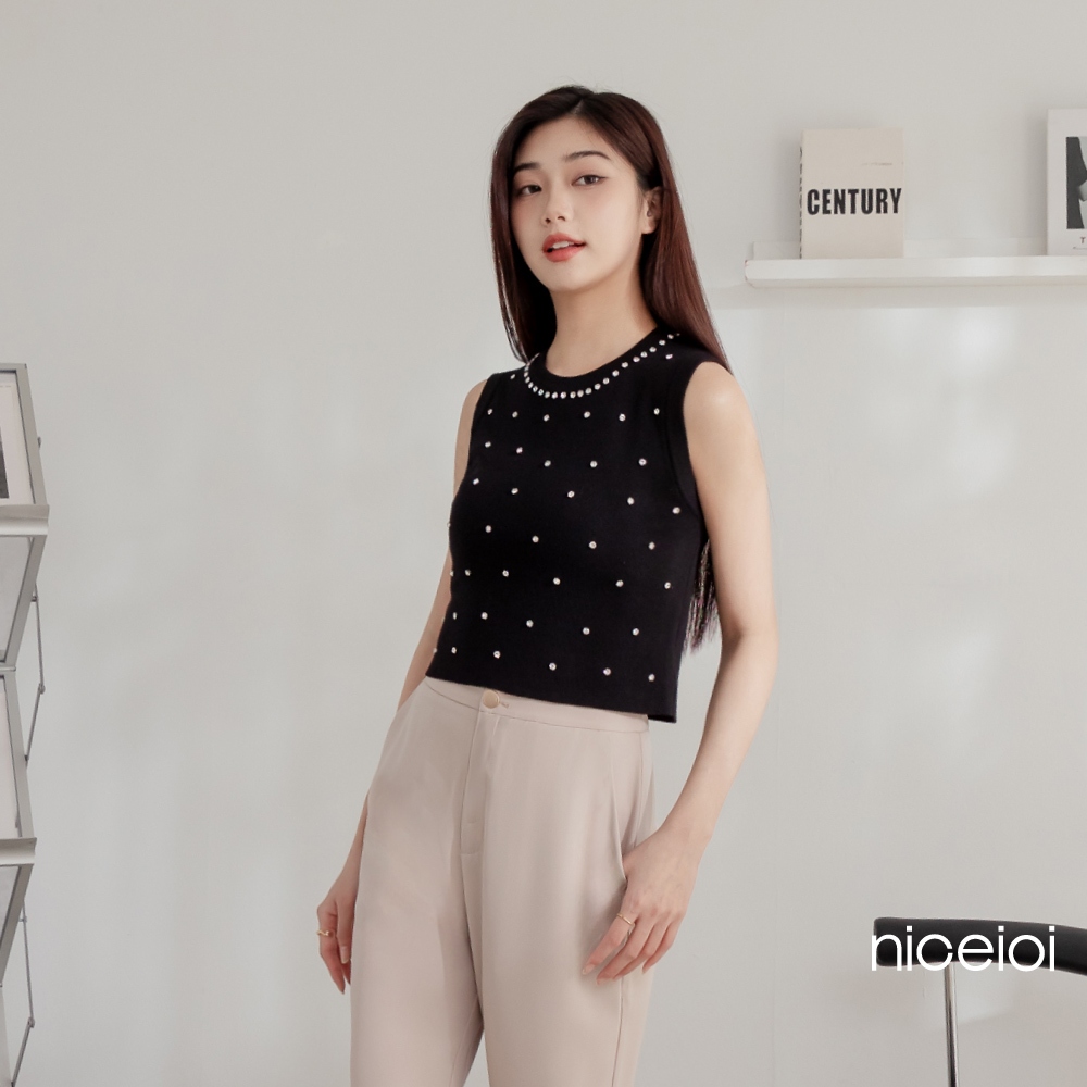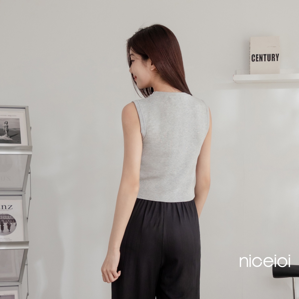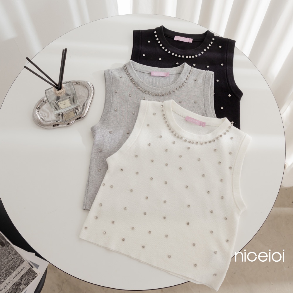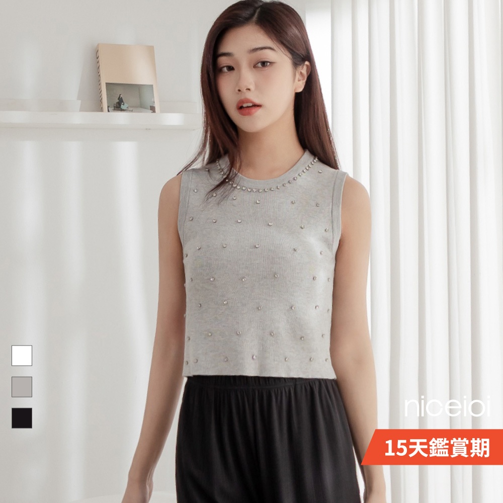 niceioi 針織上衣 無袖 背心 灰色 涼感上衣 [精彩生活水鑽無袖涼感針織上衣] 女裝針織上衣-白,F|針織上衣-灰,F|針織上衣-黑,FT-shirtsniceioi 官方旗艦店