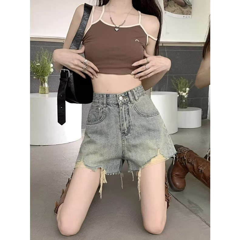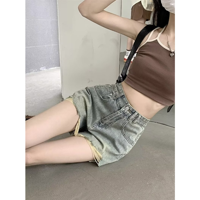【ohi】短褲 牛仔短褲 破洞短褲 破洞女牛仔短褲 高腰顯瘦熱褲寬鬆 牛仔短褲女(XGJL1168)