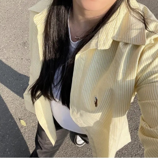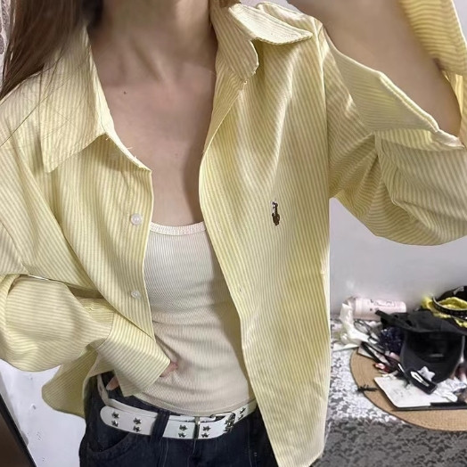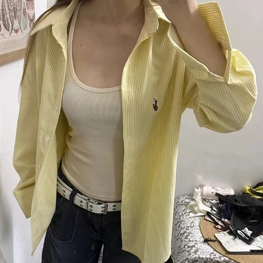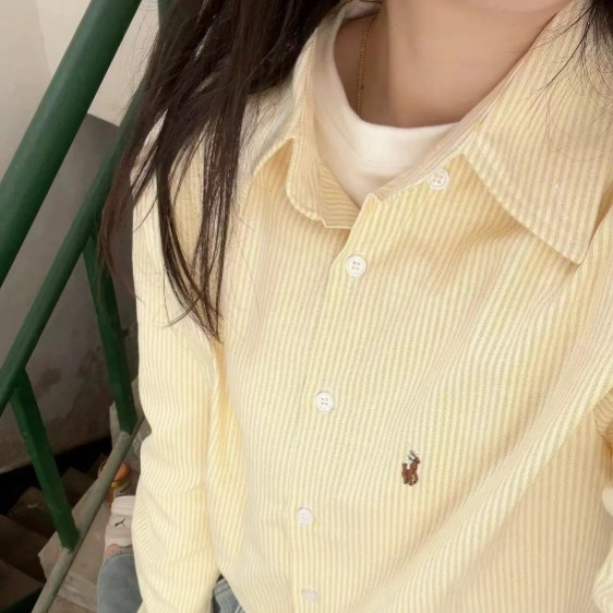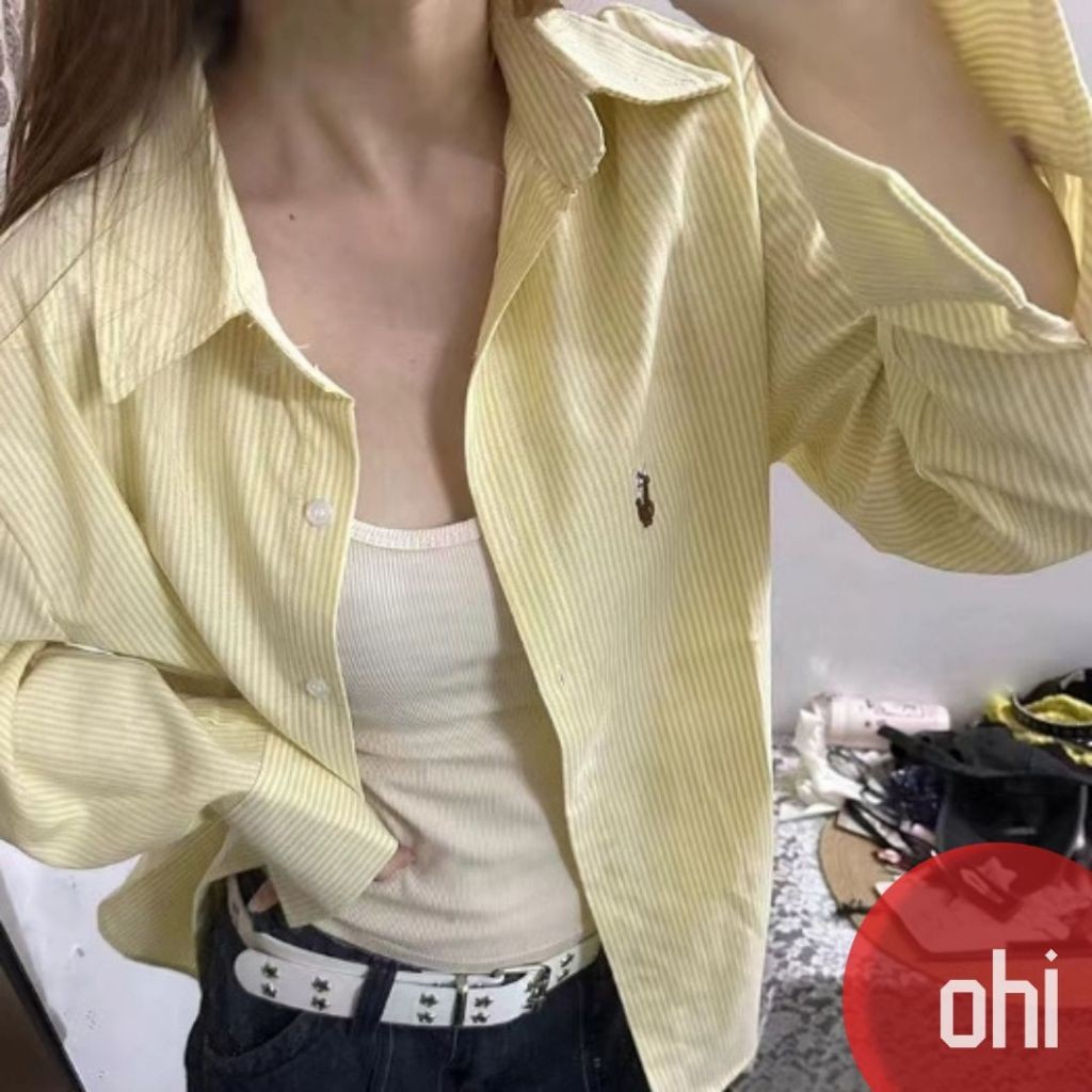 【ohi】奶黃色條紋襯衫 防曬衣 寬鬆百搭 長袖襯衫 學院風襯衫女 女生襯衫 襯衣 襯衫 上衣 女裝 GSN2391圖片色,M|圖片色,L|圖片色,XL|圖片色,2XLShirts & BlousesOHI衣著