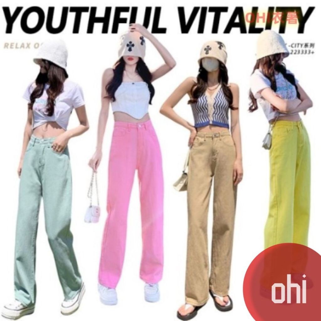 【ohi】彩色長褲 牛仔長褲 牛仔褲 寬褲 闊腿褲 老爹褲墜感水洗牛仔闊腿長褲女顯瘦高腰休閒直筒褲(GJC559)粉色,XL|薄荷綠,S|薄荷綠,XL|黃色,S|卡其,L|粉色,S|粉色,M|粉色,L|黃色,L|黃色,XL|卡其,S|卡其,XL|薄荷綠,M|薄荷綠,L|黃色,M|卡其,M|深綠,S|深綠,M|深綠,L|深綠,XLOHI衣著
