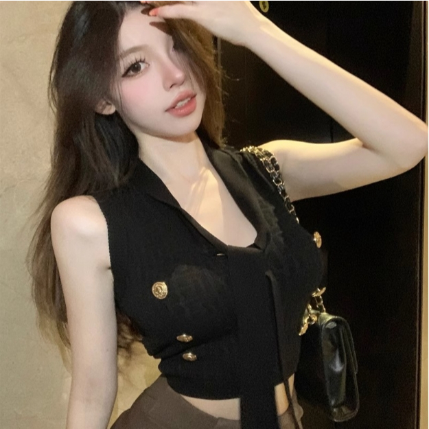【ohi】名媛小香風緹花飄帶針織背心 無袖上衣 女生上衣 針織上衣 女裝 顯瘦上衣 韓版上衣 GWD6580黑色,F碼(40-65KG可穿)|杏色,F碼(40-65KG可穿)OthersOHI衣著