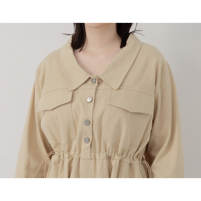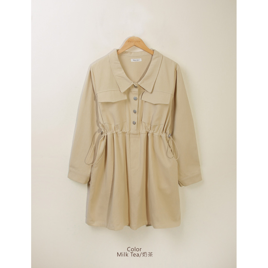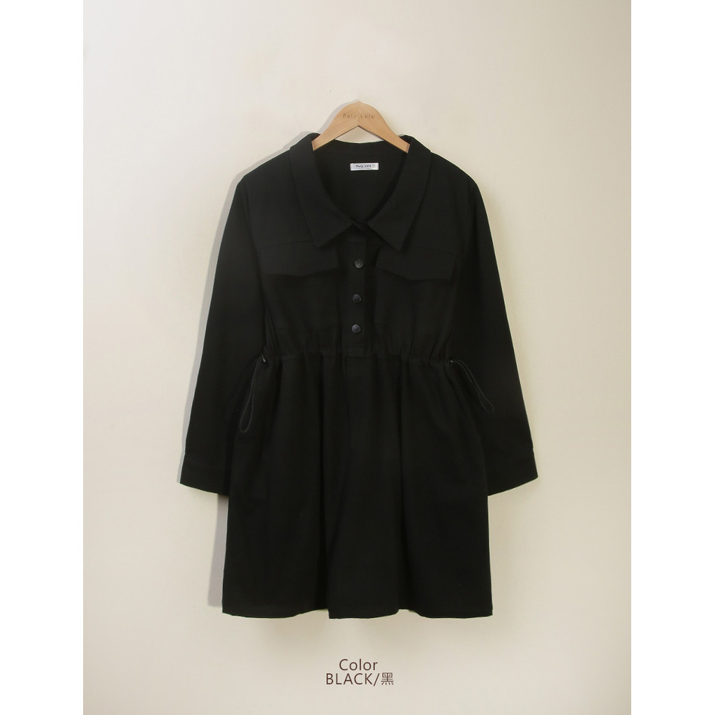 【PolyLulu】 日常工裝排釦翻領抽繩斜紋短洋裝 中大尺碼洋裝奶茶色,XL|奶茶色,2XL|棕色,L|棕色,XL|棕色,2XL|棕色,3XL|黑色,L|黑色,2XL|奶茶色,3XL|黑色,XL|黑色,3XL|奶茶色,LPOLY LULU丨BEAUTY HAS NO SIZE 中大尺碼女裝