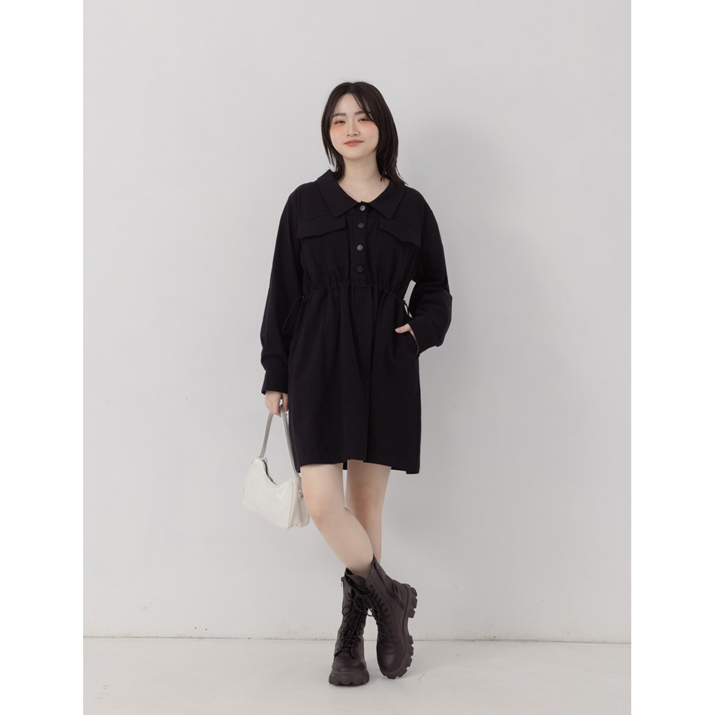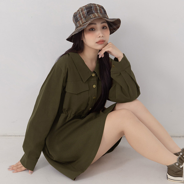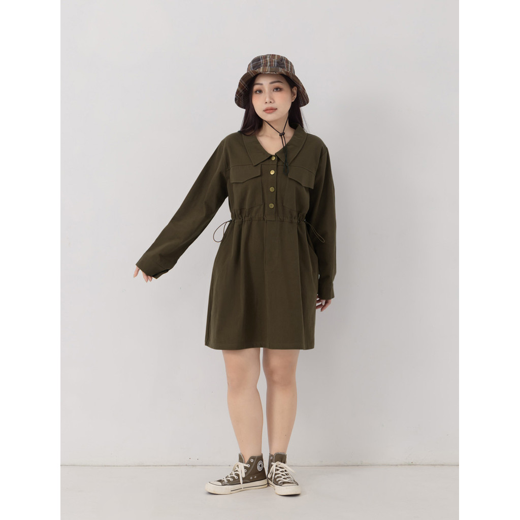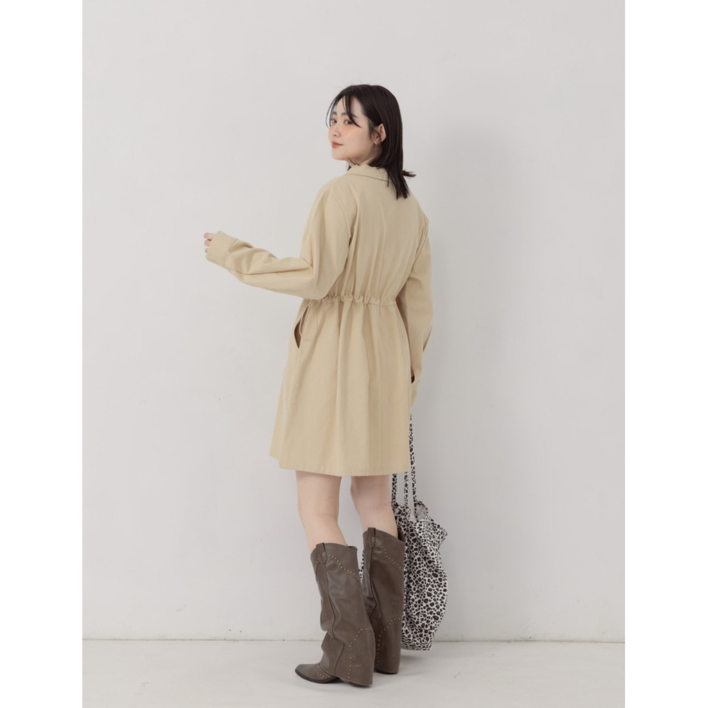【PolyLulu】 日常工裝排釦翻領抽繩斜紋短洋裝 中大尺碼洋裝奶茶色,XL|奶茶色,2XL|棕色,L|棕色,XL|棕色,2XL|棕色,3XL|黑色,L|黑色,2XL|奶茶色,3XL|黑色,XL|黑色,3XL|奶茶色,LPOLY LULU丨BEAUTY HAS NO SIZE 中大尺碼女裝