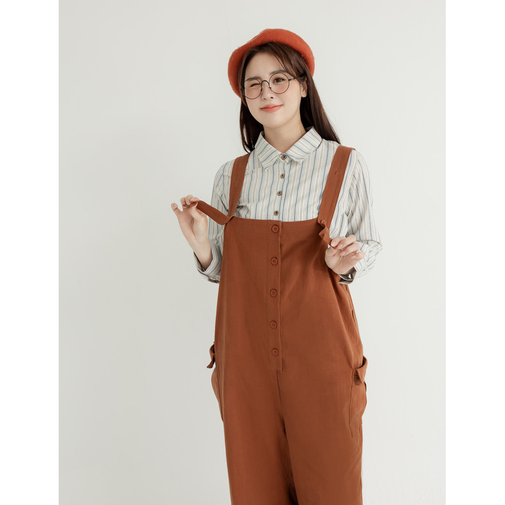 MIUSTAR 正韓 微笑單口袋棉質長洋裝(共3色)0207 預購【NL0812RE】海藍F|鐵灰F|咖啡FMIUSTAR