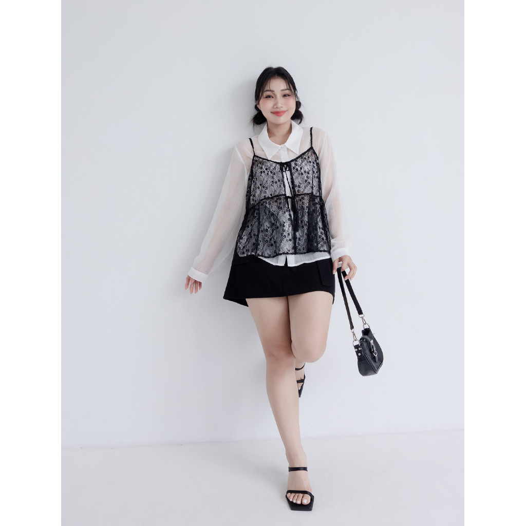 【PolyLulu】 日系可調式蕾絲綁帶背心 中大尺碼上衣 黑色L|XL|2XL|3XLPOLY LULU丨BEAUTY HAS NO SIZE 中大尺碼女裝