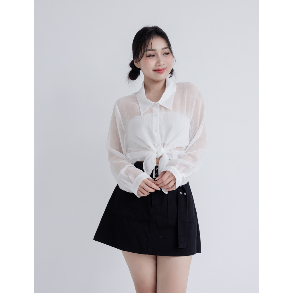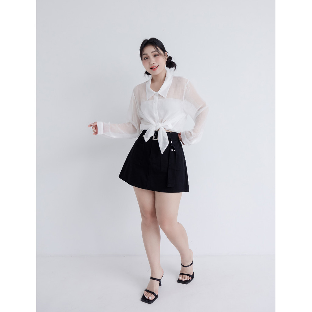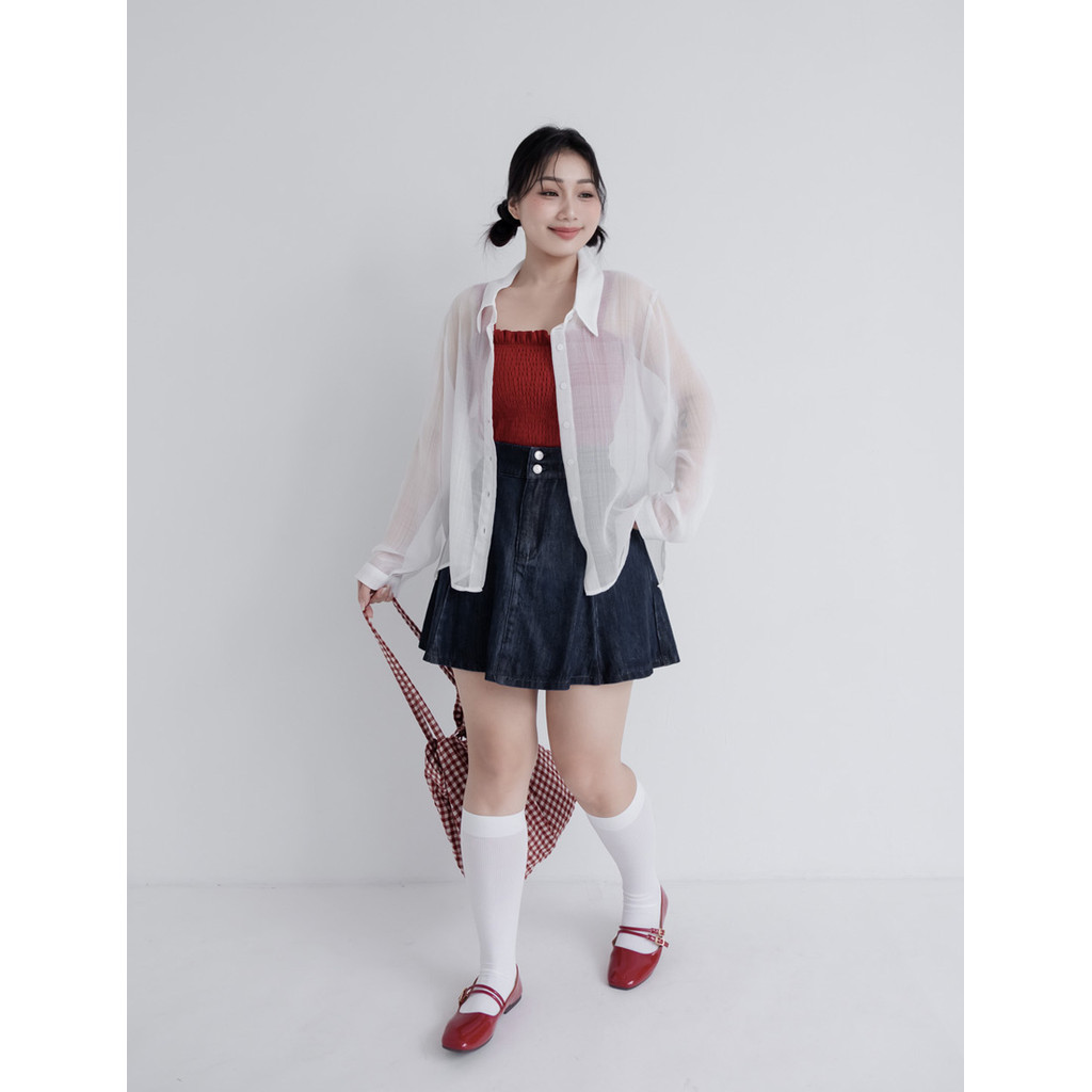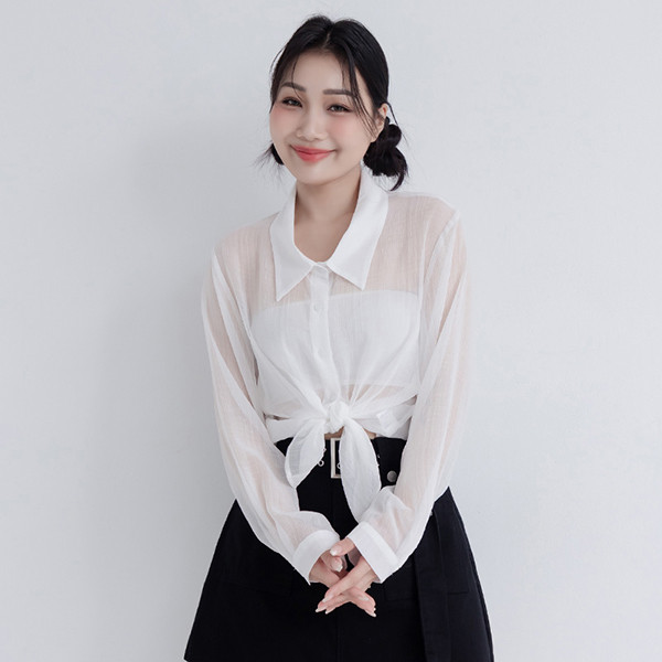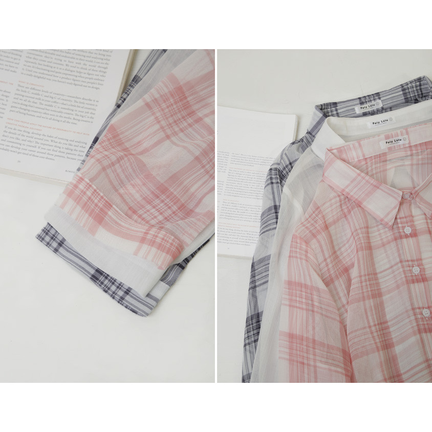 【PolyLulu】 皺皺感透膚格子長袖襯衫 中大尺碼上衣 白色L|XL|2XL|3XLShirts & BlousesPOLY LULU丨BEAUTY HAS NO SIZE 中大尺碼女裝