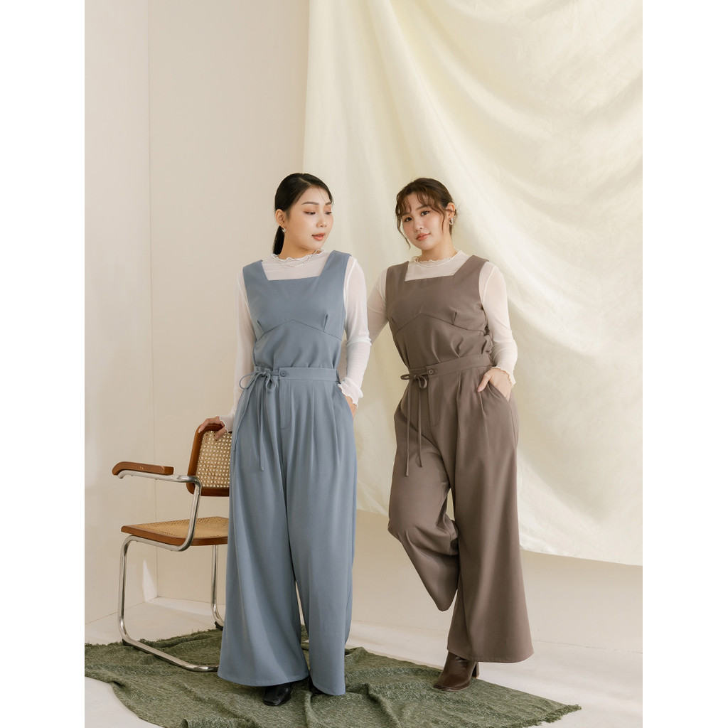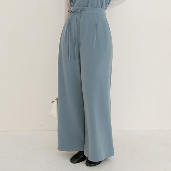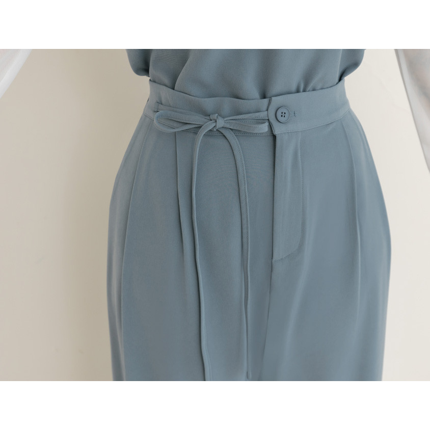 【PolyLulu】 MISS.設計款側綁帶打褶微喇叭西裝褲 中大尺碼褲子 霧藍色XL|2XL|3XL|LPantsPOLY LULU丨BEAUTY HAS NO SIZE 中大尺碼女裝