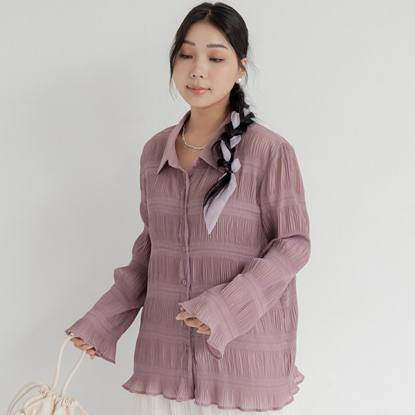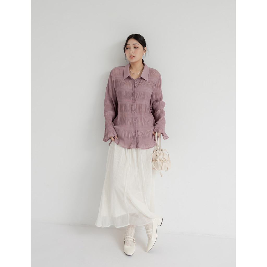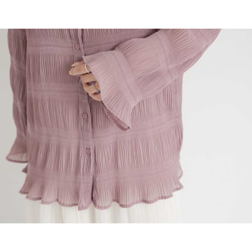 【PolyLulu】 MISS.韓系歐膩多色皺皺微喇叭袖襯衫 中大尺碼上衣 霧紫色XL|2XL|3XL|LShirts & BlousesPOLY LULU丨BEAUTY HAS NO SIZE 中大尺碼女裝
