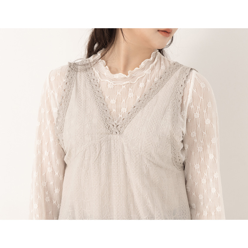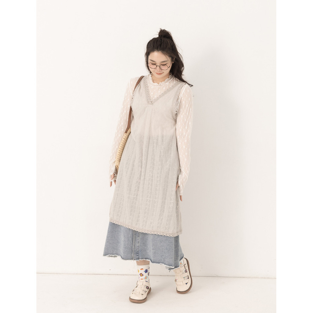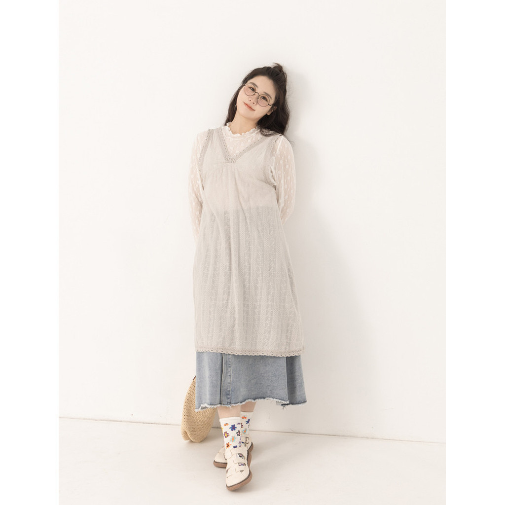【PolyLulu】 MORI.日系V領百搭蕾絲吊帶長版背心 中大尺碼上衣 灰色