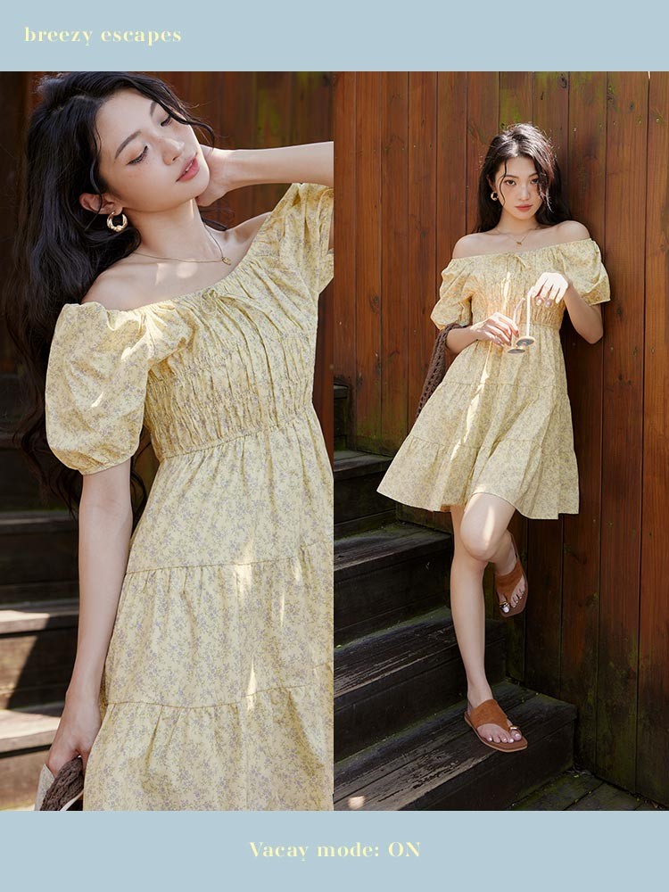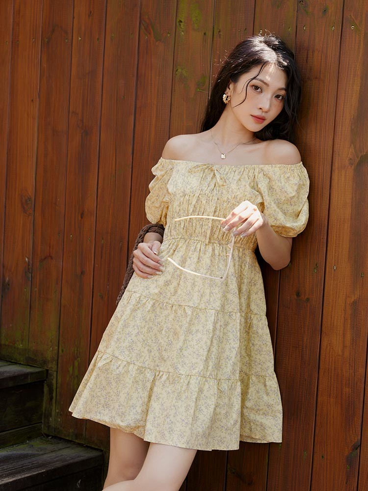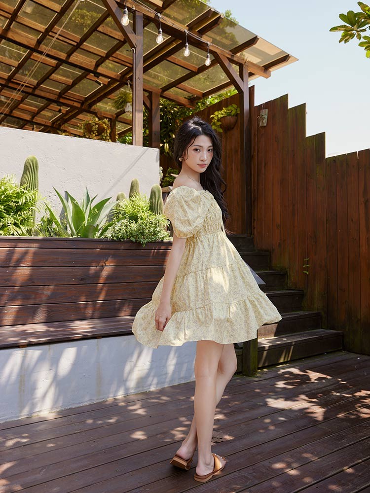 OB嚴選 兩穿一字領蛋糕層次碎花短洋裝 《DA10496》深藍,S|深藍,M|深藍,L|深藍,XL|深藍,2L|深藍,3L|黃,S|黃,M|黃,L|黃,XL|黃,2L|黃,3LOB嚴選官方旗艦店