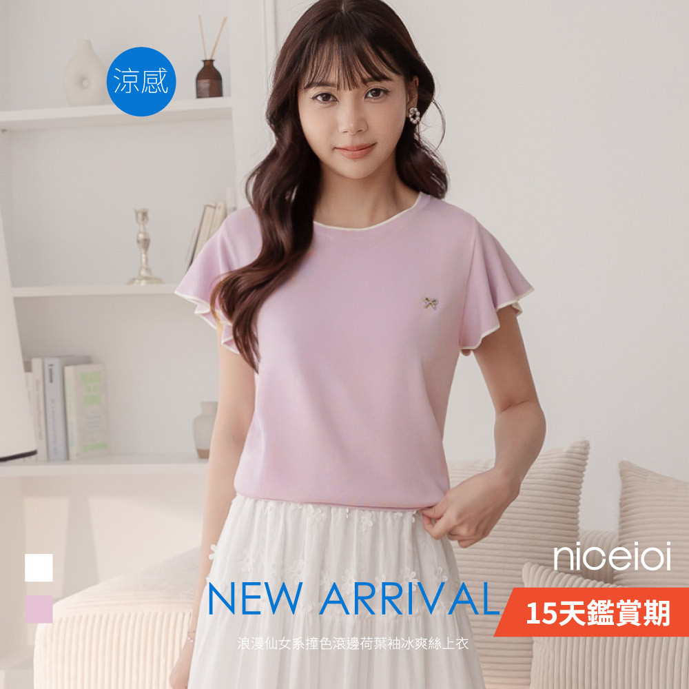 niceioi 涼感上衣 短袖 荷葉上衣 紫色 [浪漫仙女系撞色滾邊荷葉袖冰爽絲上衣] 冰爽絲 大尺碼上衣 女裝涼感荷葉邊上衣-白,S|涼感荷葉邊上衣-紫,M|涼感荷葉邊上衣-白,L|涼感荷葉邊上衣-紫,S|涼感荷葉邊上衣-白,M|涼感荷葉邊上衣-紫,L|涼感荷葉邊上衣-白,XL|涼感荷葉邊上衣-紫,XLT-shirtsniceioi 官方旗艦店