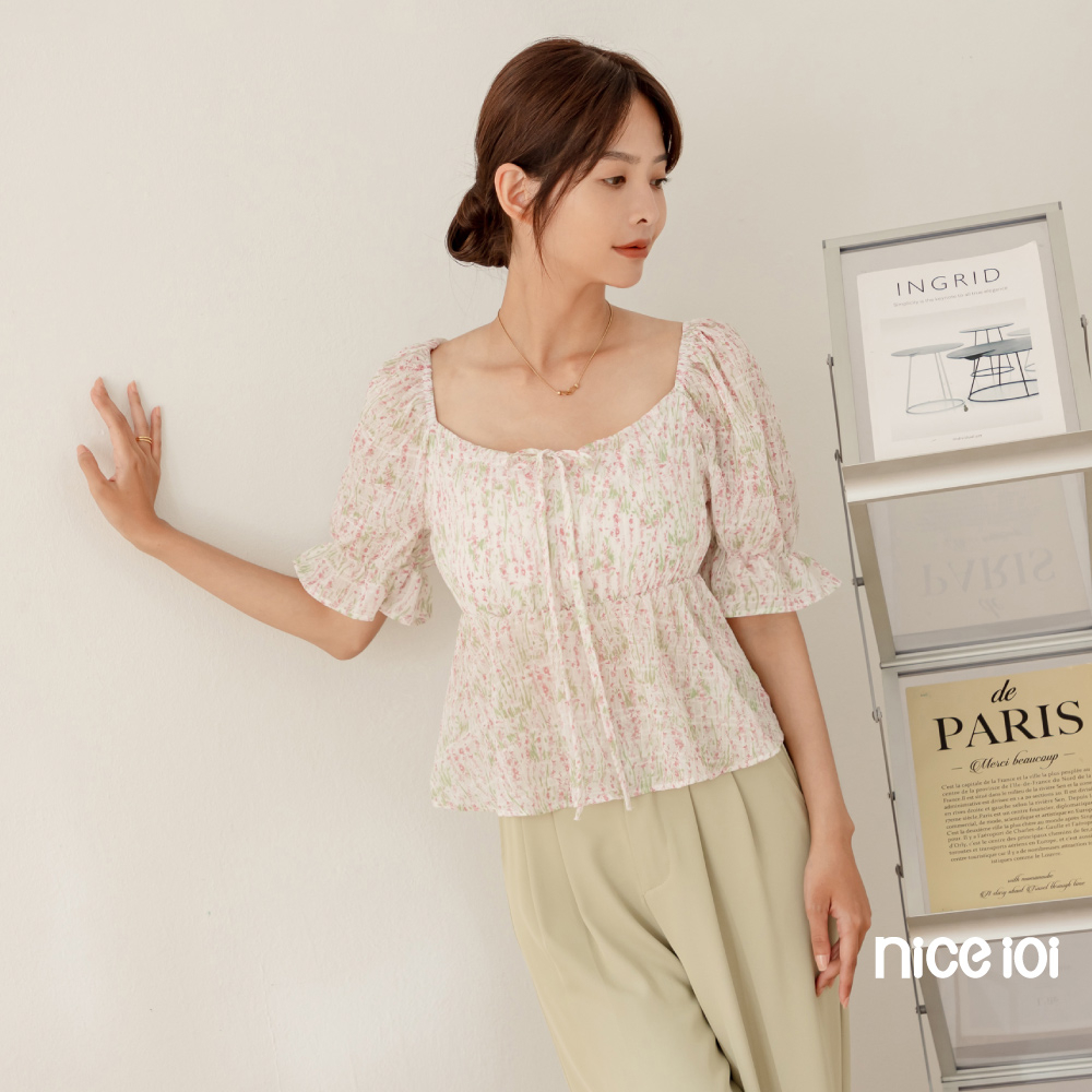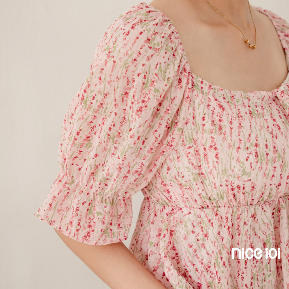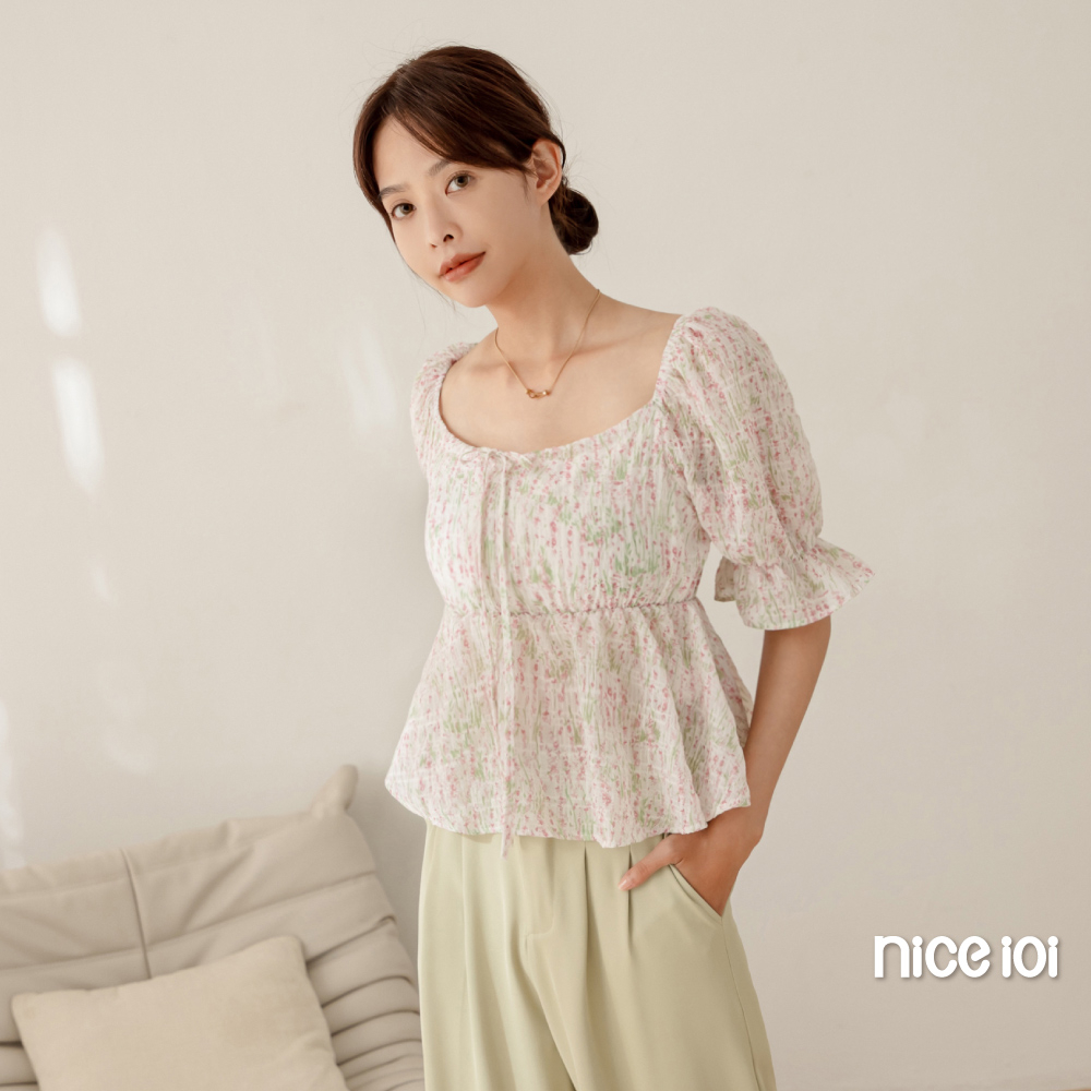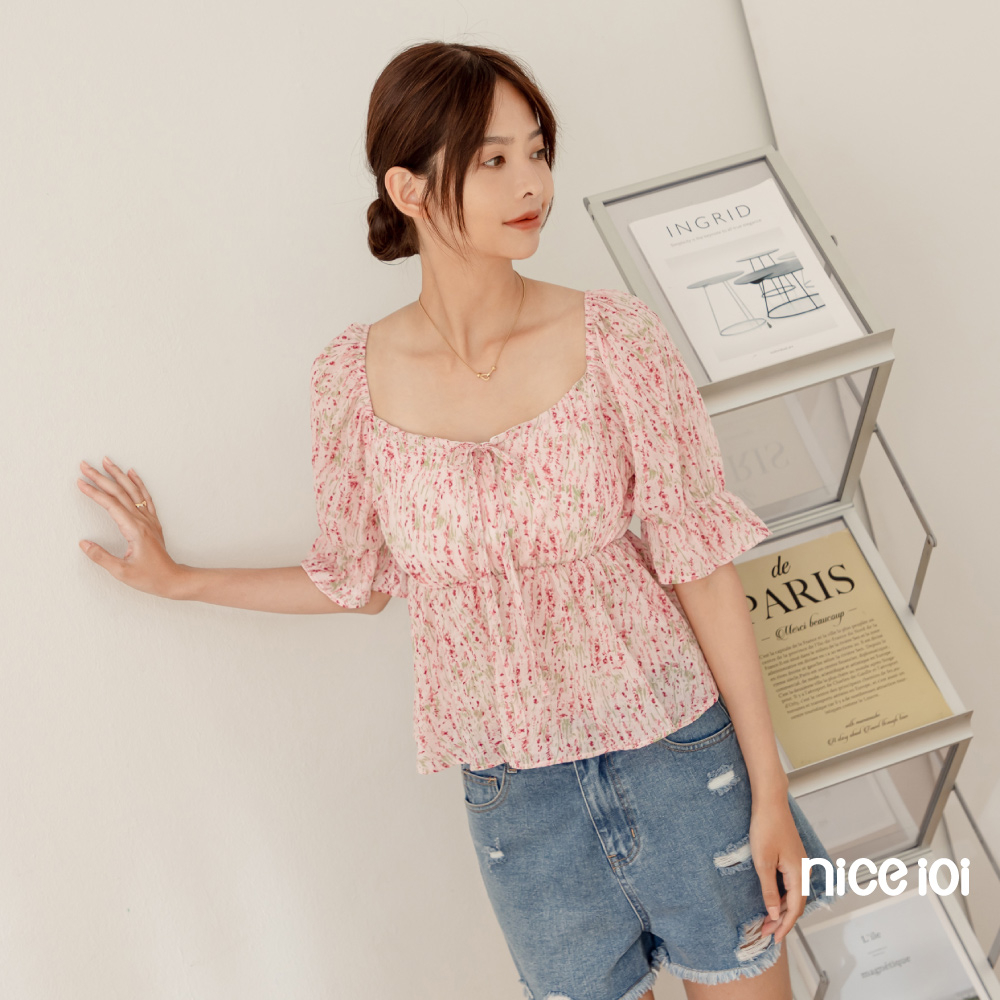 niceioi【特惠】櫻花樹下的約定2WAY雪紡上衣 (共2色) 兩穿上衣 雪紡衣 蓬袖上衣 女裝白,F|粉,FT-shirtsniceioi 官方旗艦店