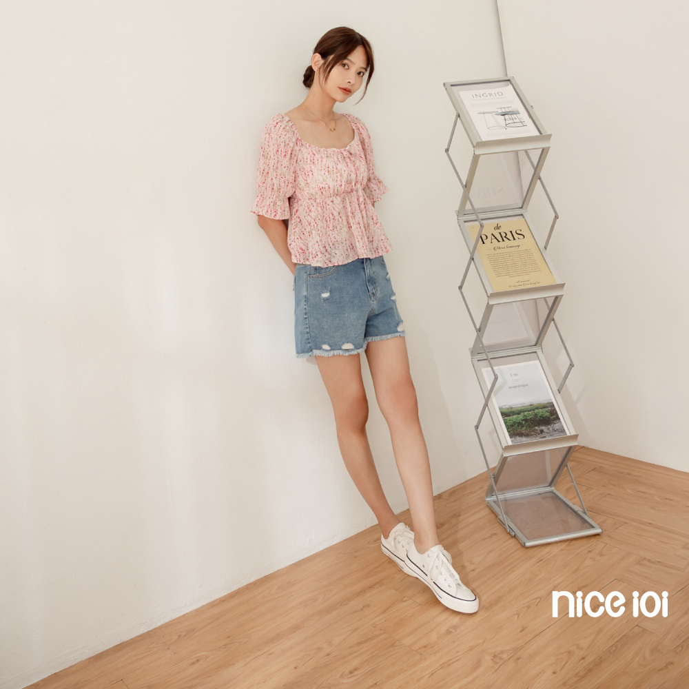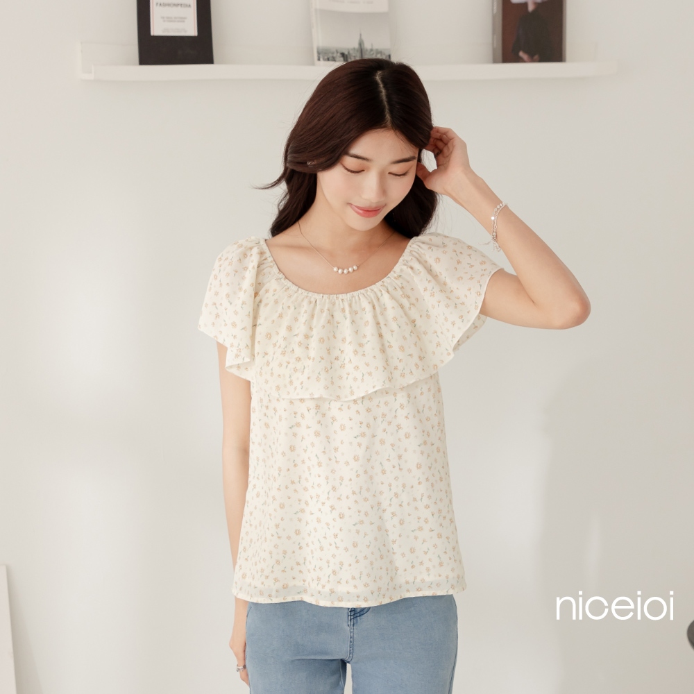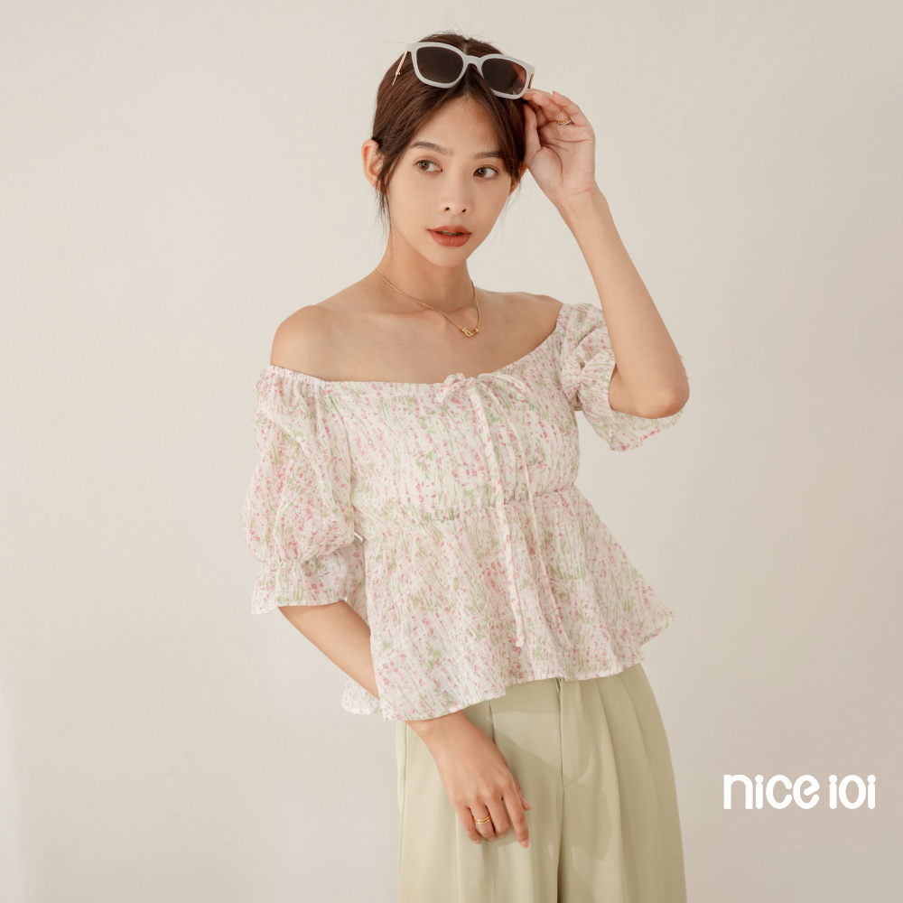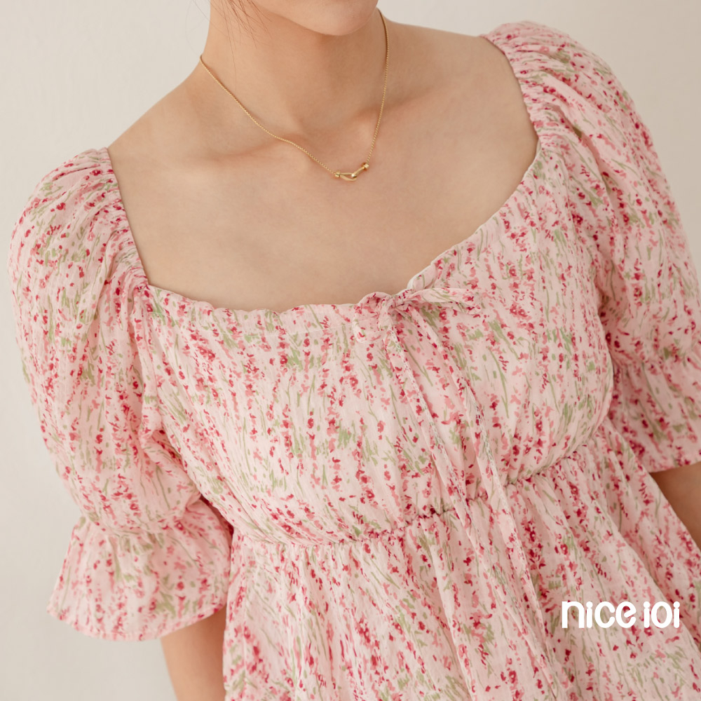 niceioi【特惠】櫻花樹下的約定2WAY雪紡上衣 (共2色) 兩穿上衣 雪紡衣 蓬袖上衣 女裝白,F|粉,FT-shirtsniceioi 官方旗艦店