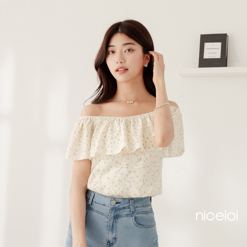 niceioi【特惠】一字領 短袖 雪紡上衣 米黃色 [滿天星3WAY雪紡上衣] 一件多穿 女裝米黃,S|米黃,M|米黃,L|米黃,XLT-shirtsniceioi 官方旗艦店