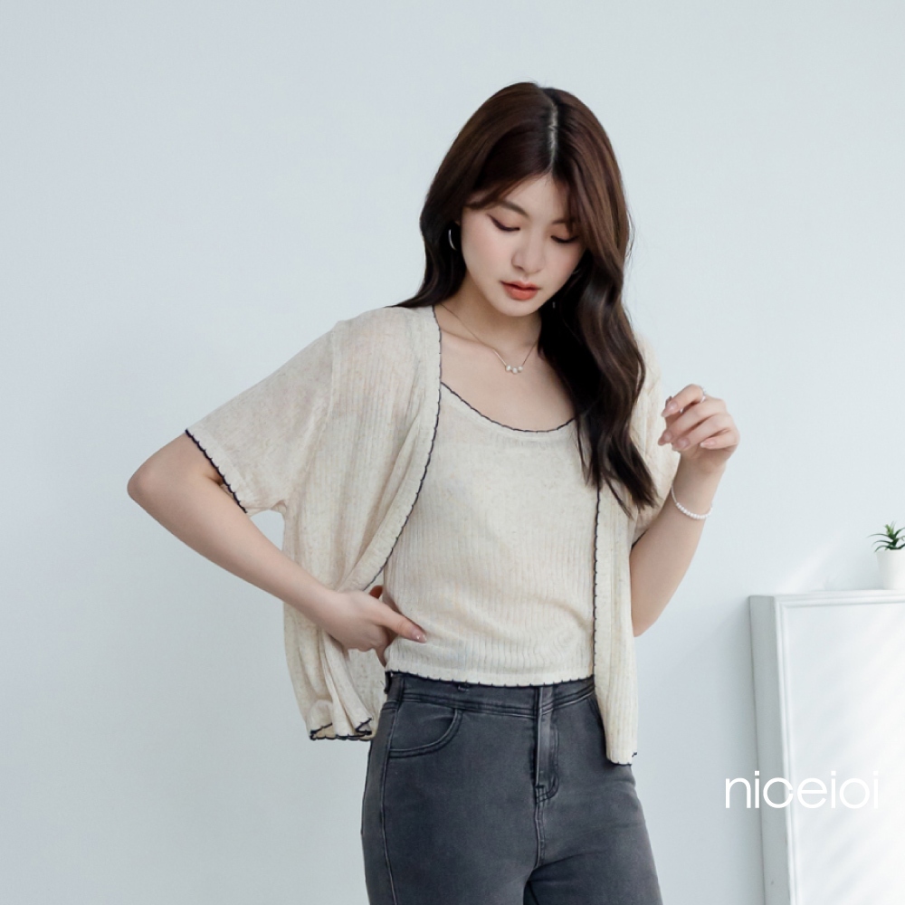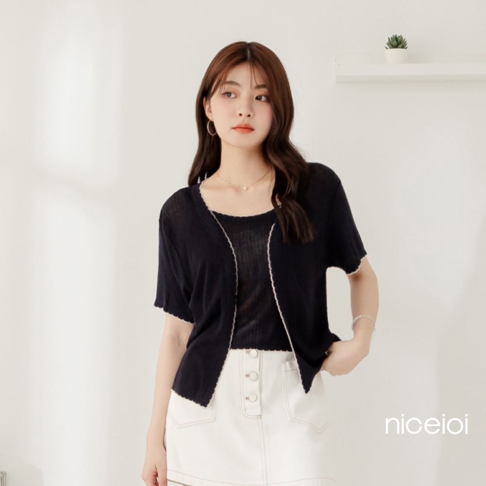 niceioi【特惠】涼夏混紡竹節麻兩件組上衣 (共2色) 女裝卡其,F|深藍,FT-shirtsniceioi 官方旗艦店