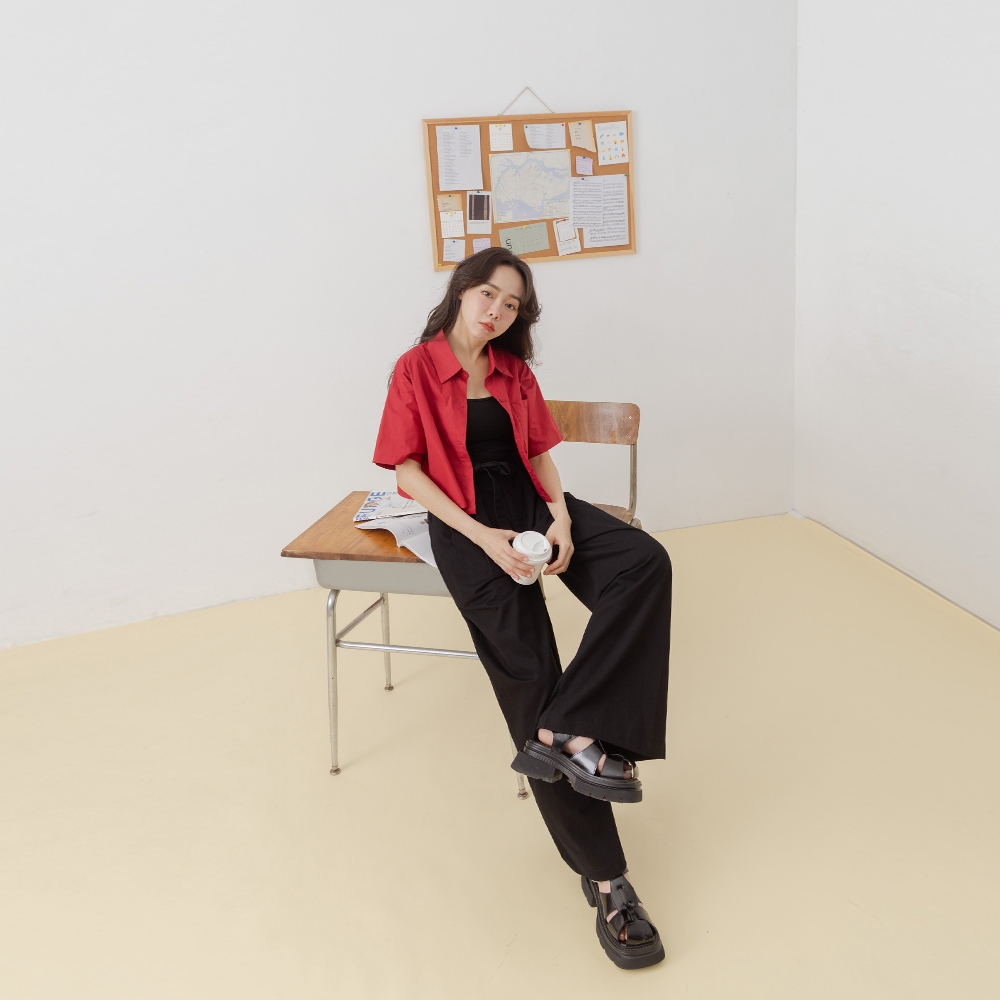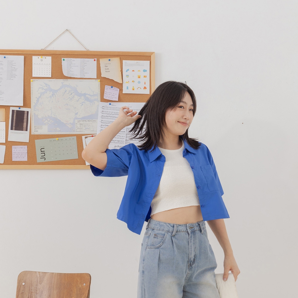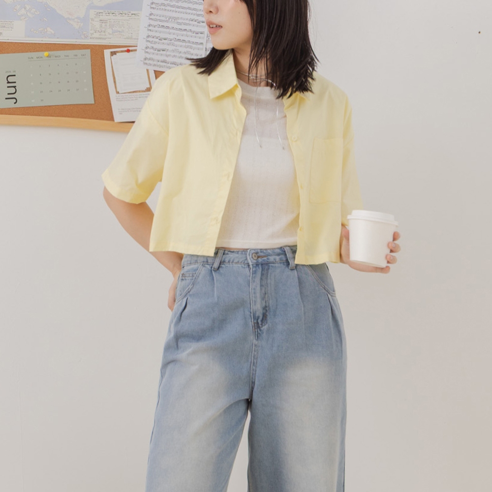 QUEENSHOP_ S 女裝 素面單口袋短版短袖襯衫 五色售 現+預 【01025512】黑|白|紅|藍|黃Shirts & BlousesQUEENSHOP