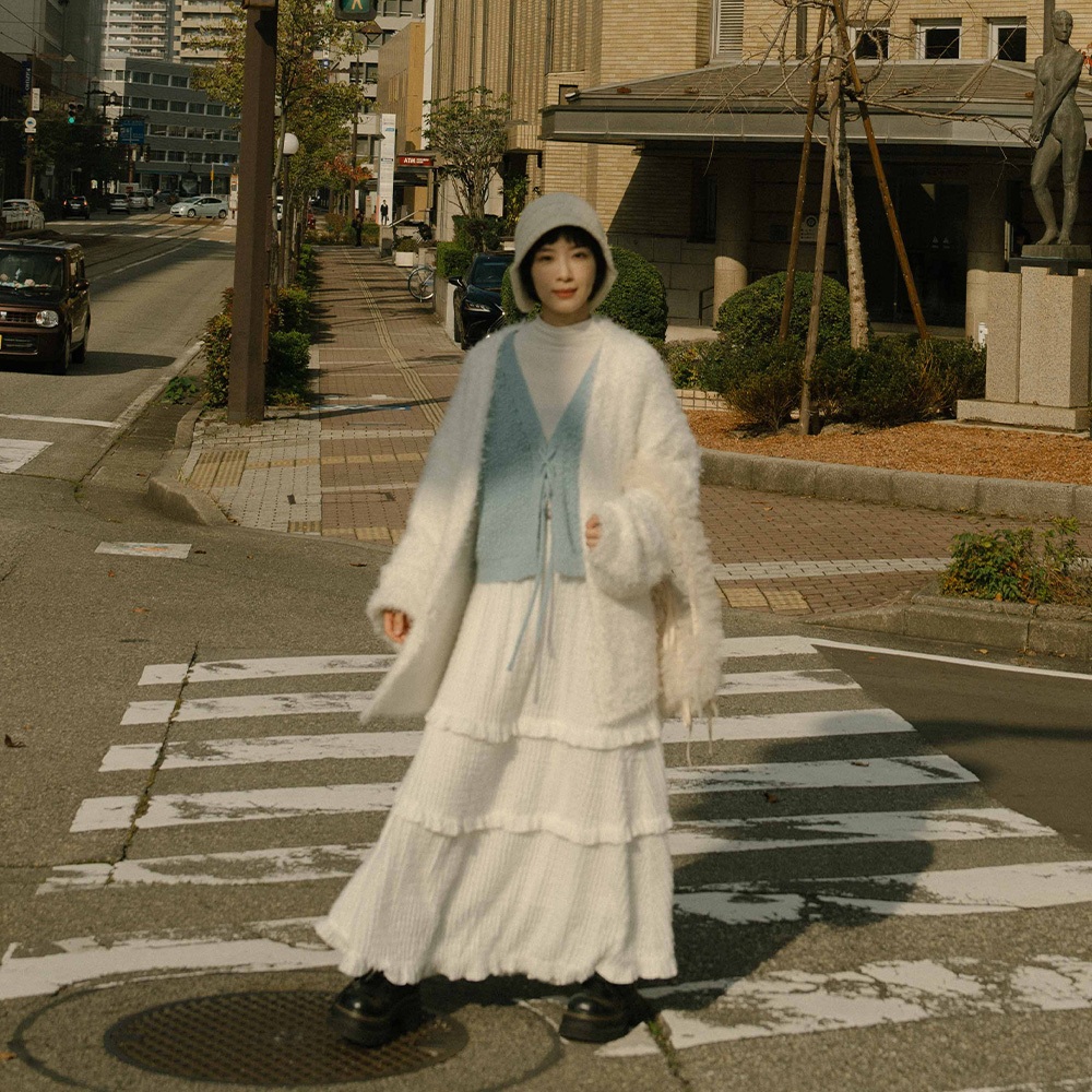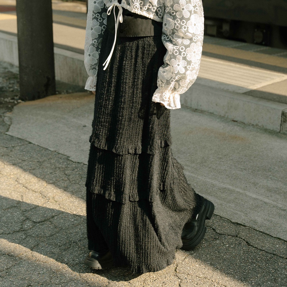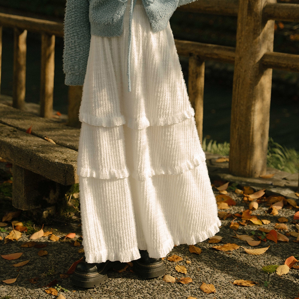 QUEENSHOP_ S 女裝 毛感鬚鬚荷葉蛋糕裙 三色售 現+預 【03021548】黑|白|淺紫QUEENSHOP