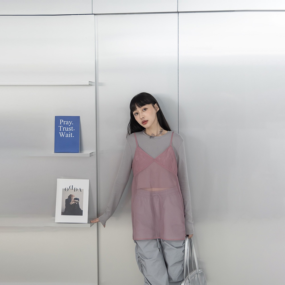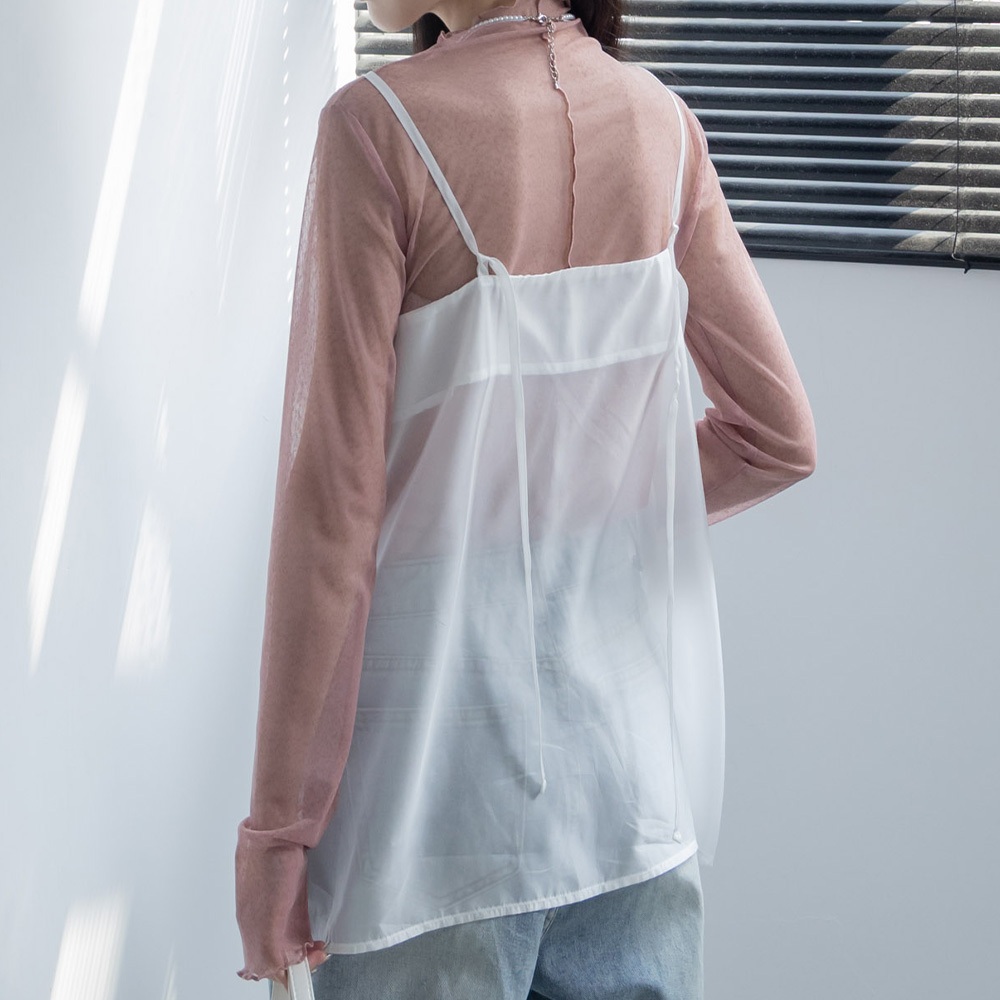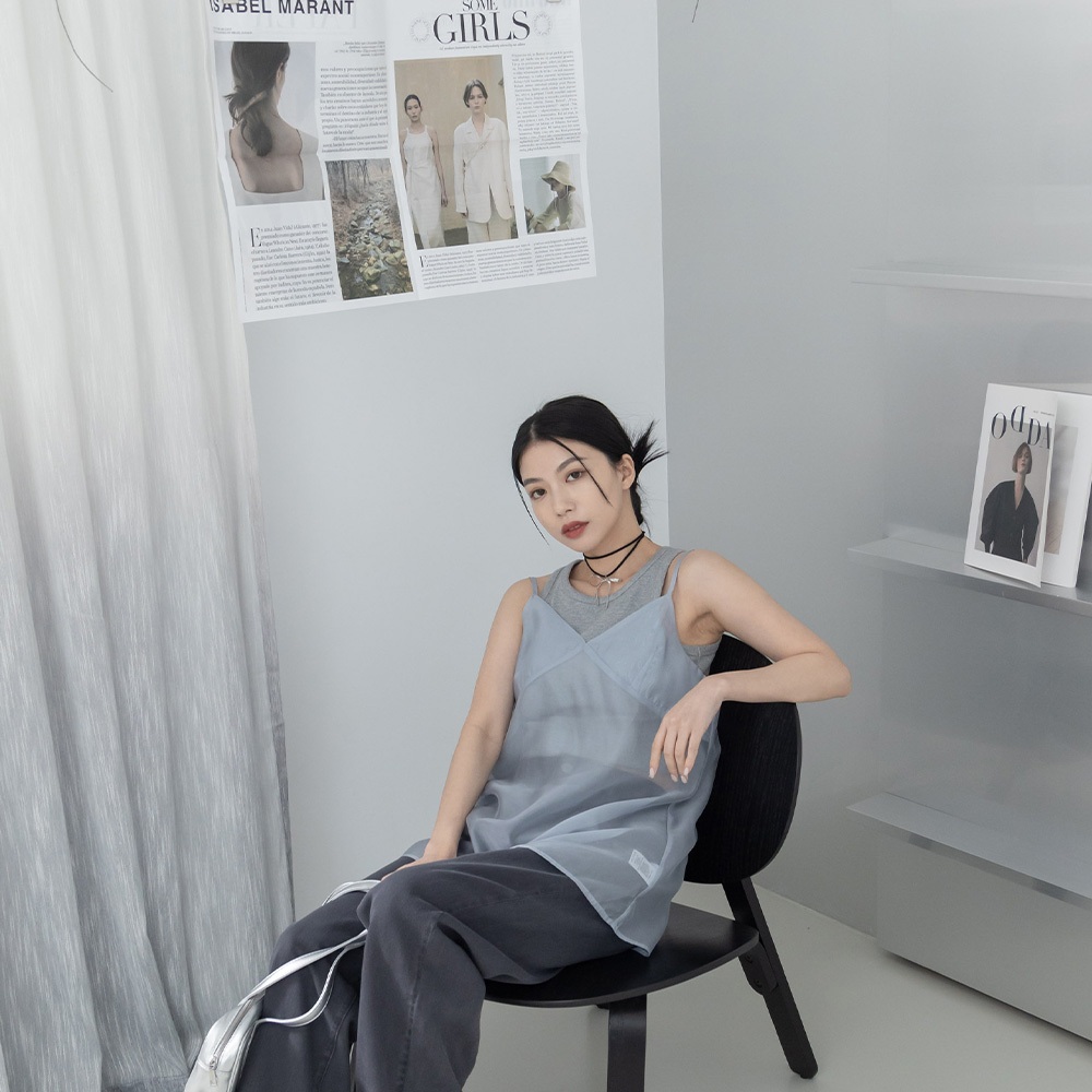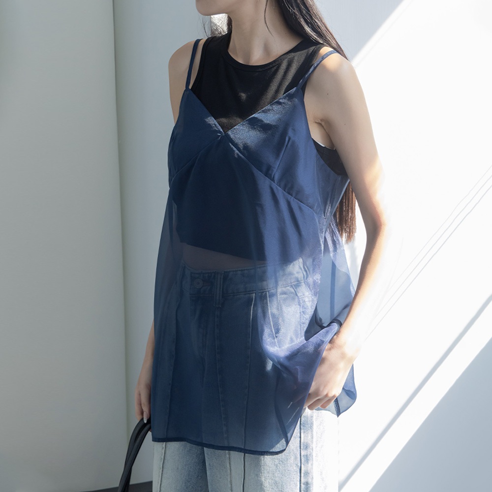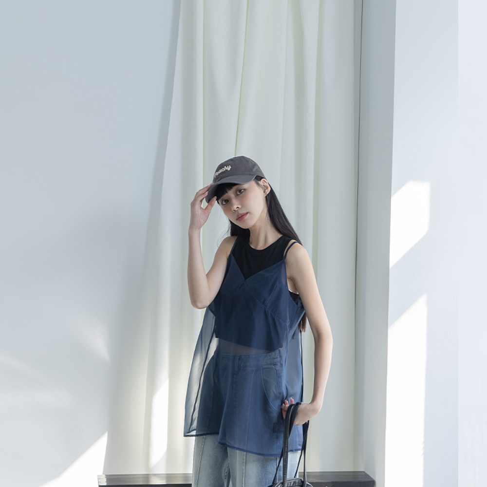 QUEENSHOP_ S 女裝 微V領透紗造型細肩罩衫 四色售 現+預 【01098857】白|藍|深藍|粉紫Tanks & CamisolesQUEENSHOP