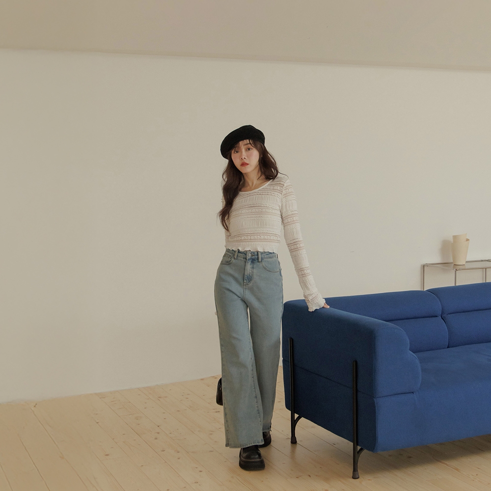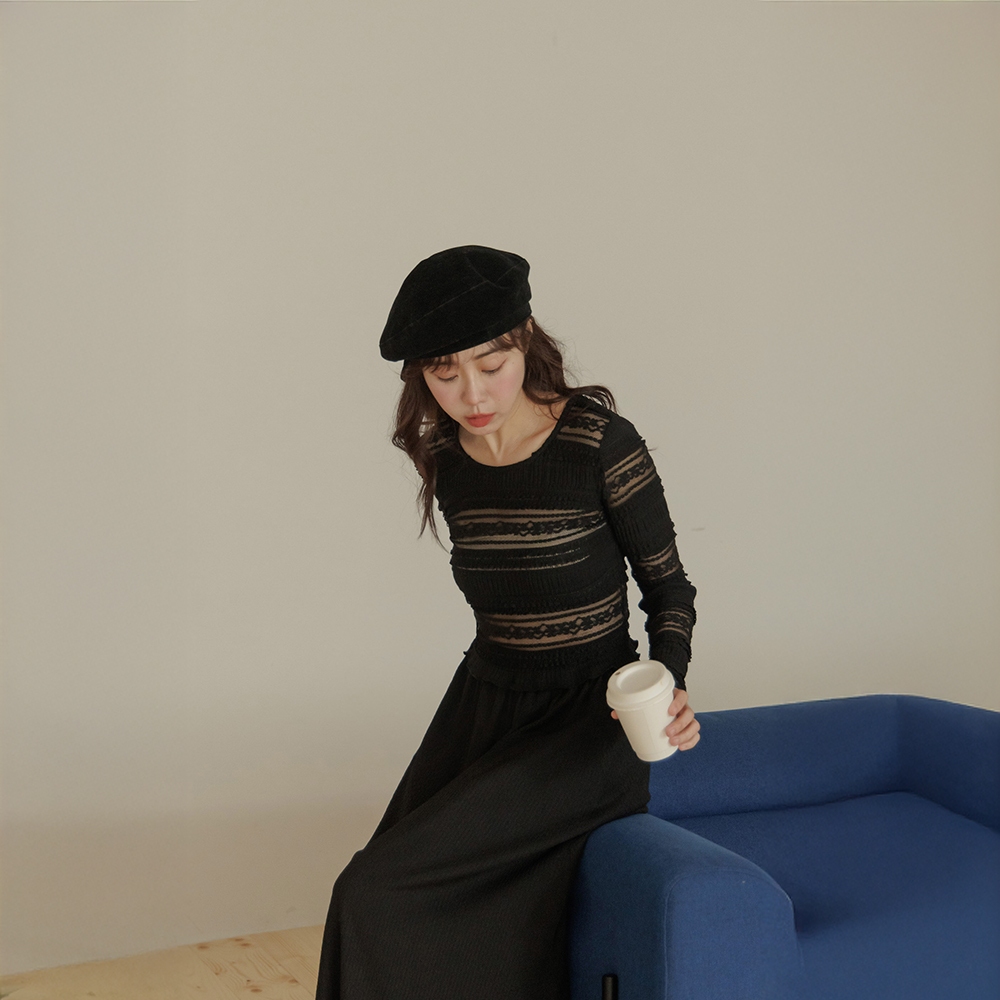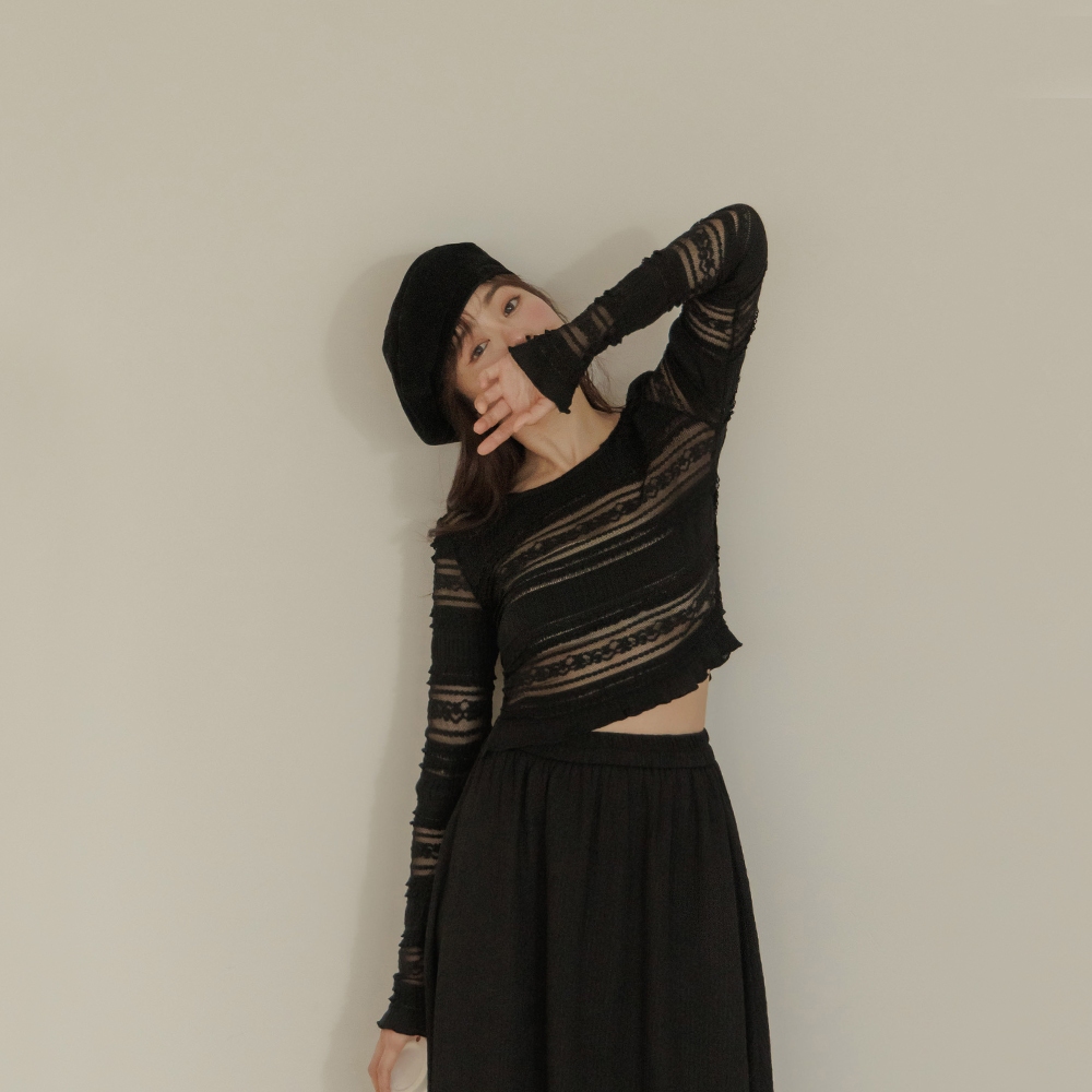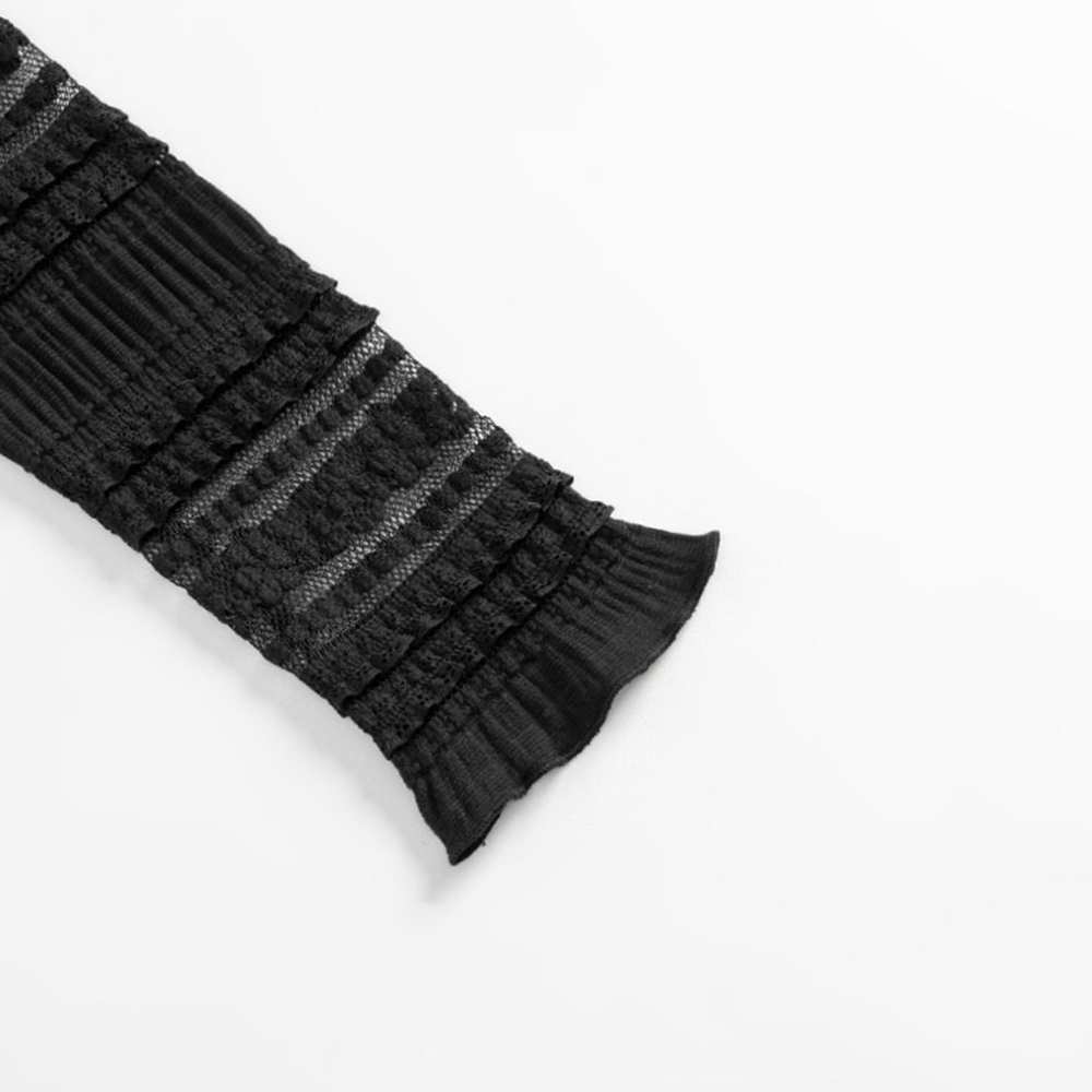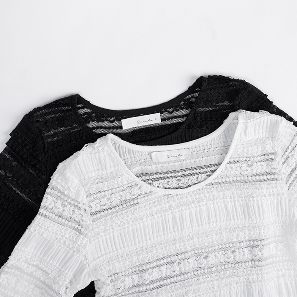QUEENSHOP_ S 女裝 長袖 微透膚蕾絲荷葉緹花上衣 兩色售 現+預 【01098827】黑|白OthersQUEENSHOP