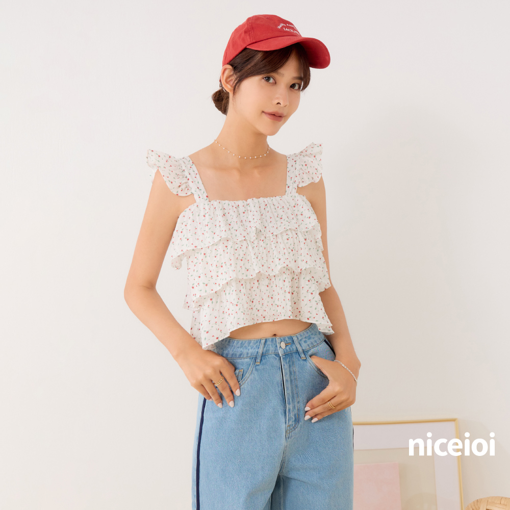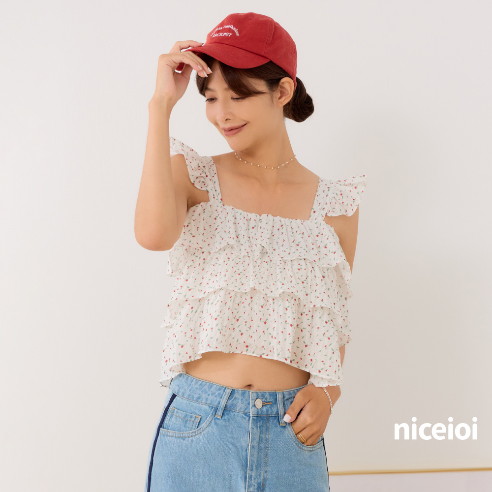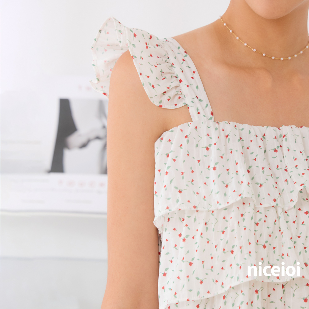 niceioi【特惠】微甜浪漫小花方領背心 女裝 直播白,FT-shirtsniceioi 官方旗艦店