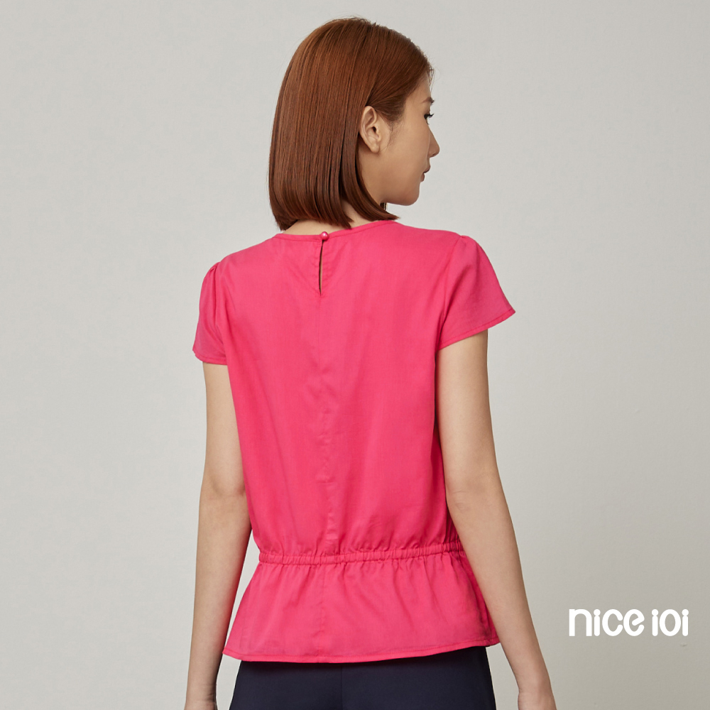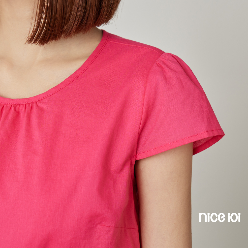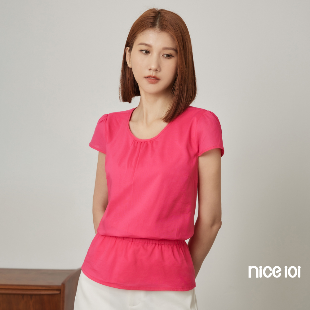 niceioi【特惠】圓領上衣 短袖 蓋袖上衣 粉色 [氣質小蓋袖縮腰上衣] 60支棉 女裝桃紅,S|桃紅,M|桃紅,L|桃紅,XLT-shirtsniceioi 官方旗艦店