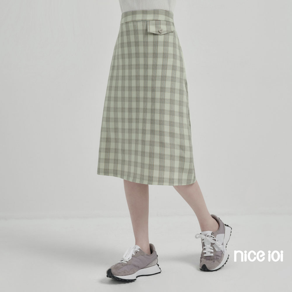 niceioi【特惠】復古格紋七分裙 女裝綠,S|綠,M|綠,L|綠,XLniceioi 官方旗艦店