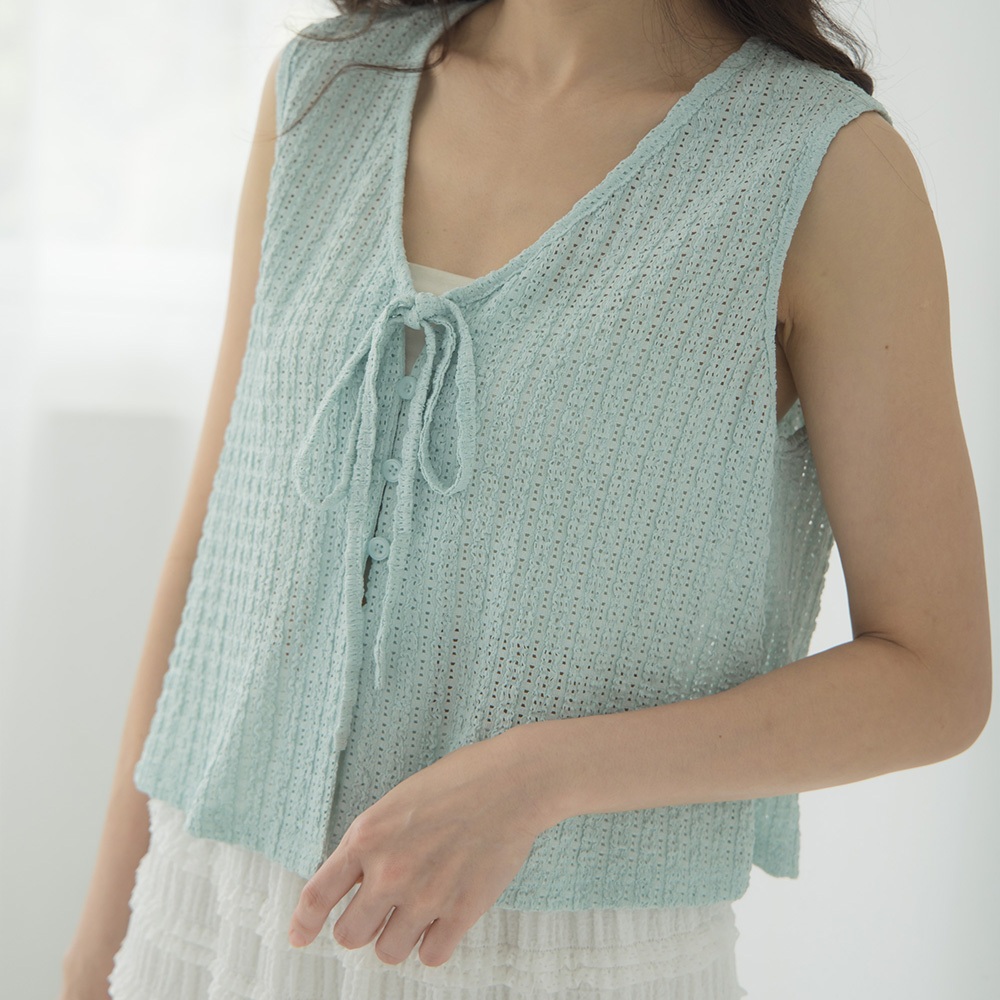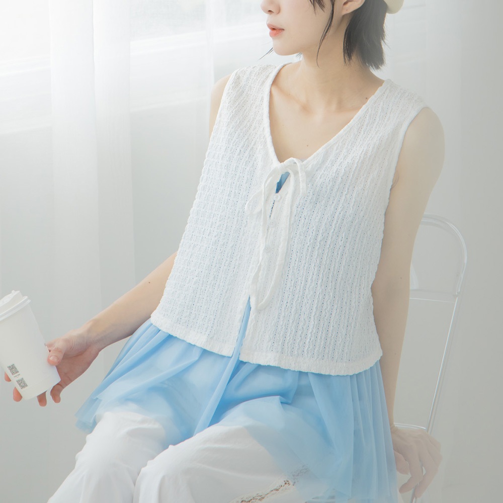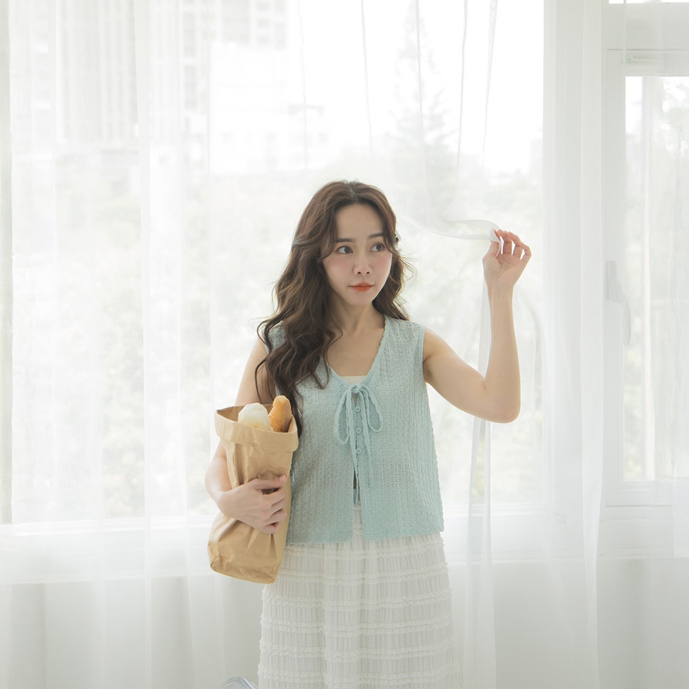 QUEENSHOP_ S 女裝 直條緹花排釦綁帶罩衫背心 四色售 現+預 【01098903】黑|白|粉|藍Tanks & CamisolesQUEENSHOP