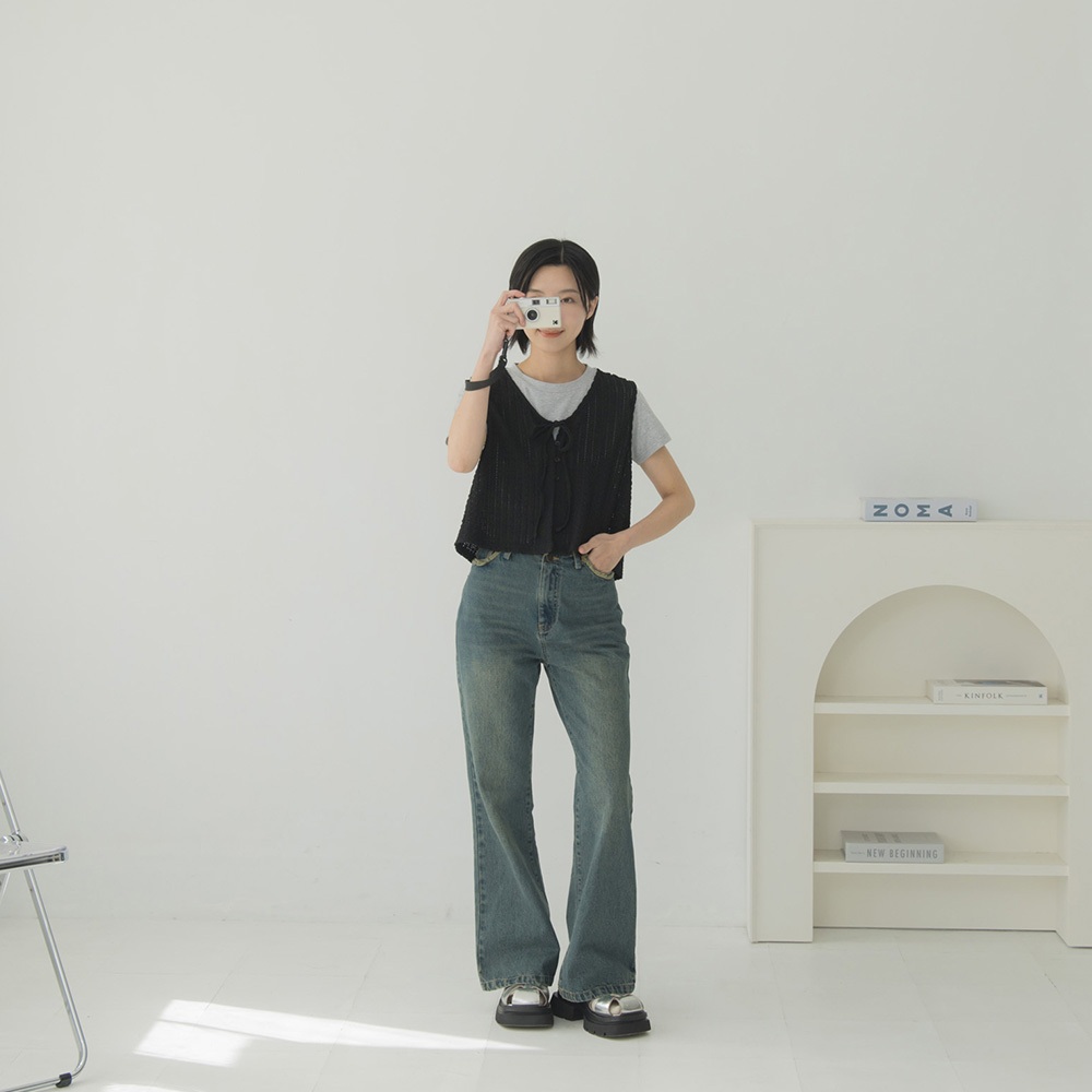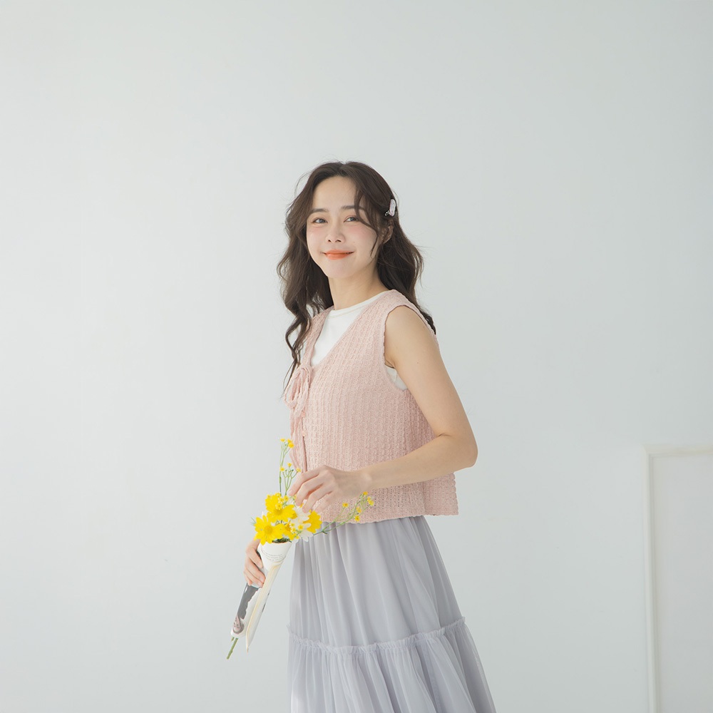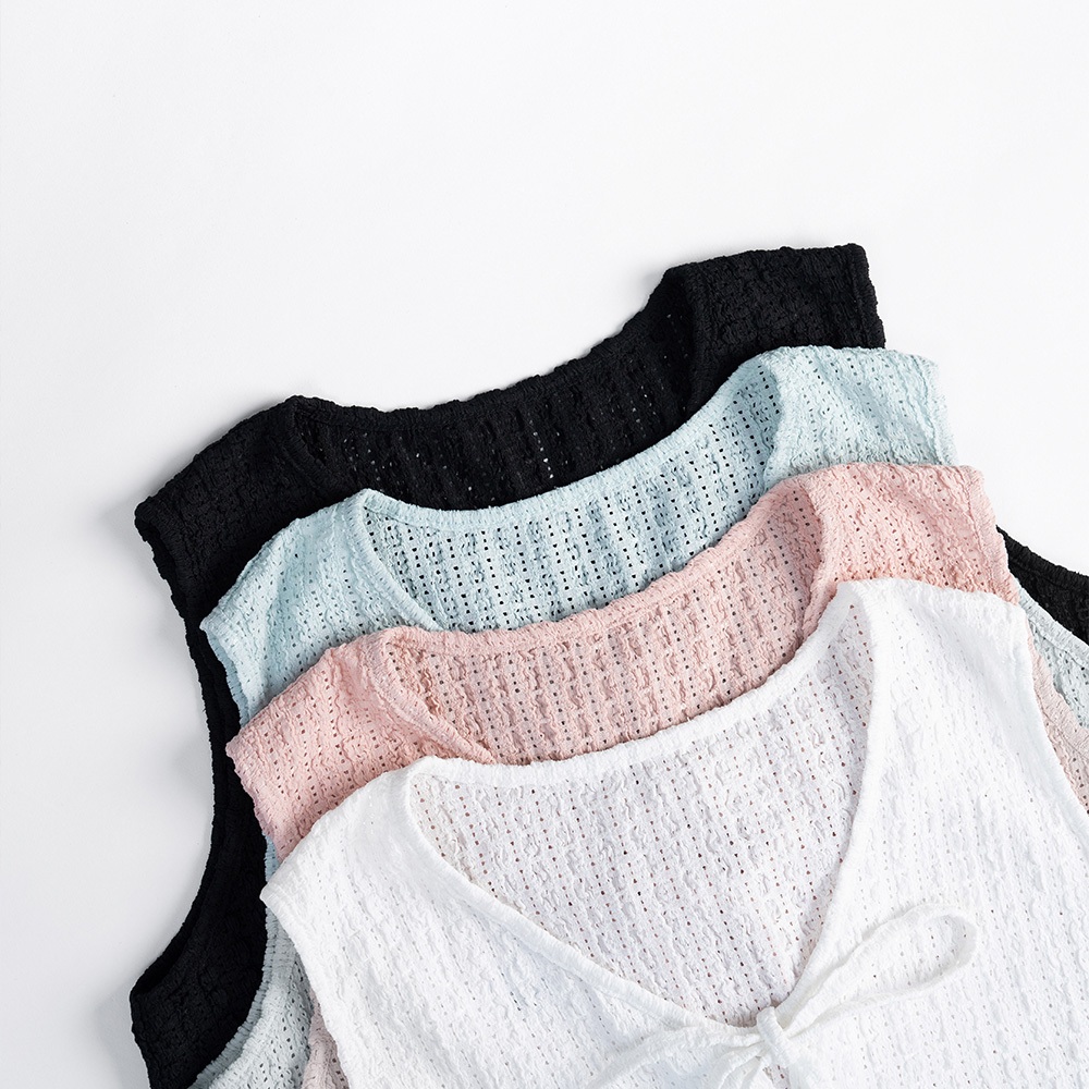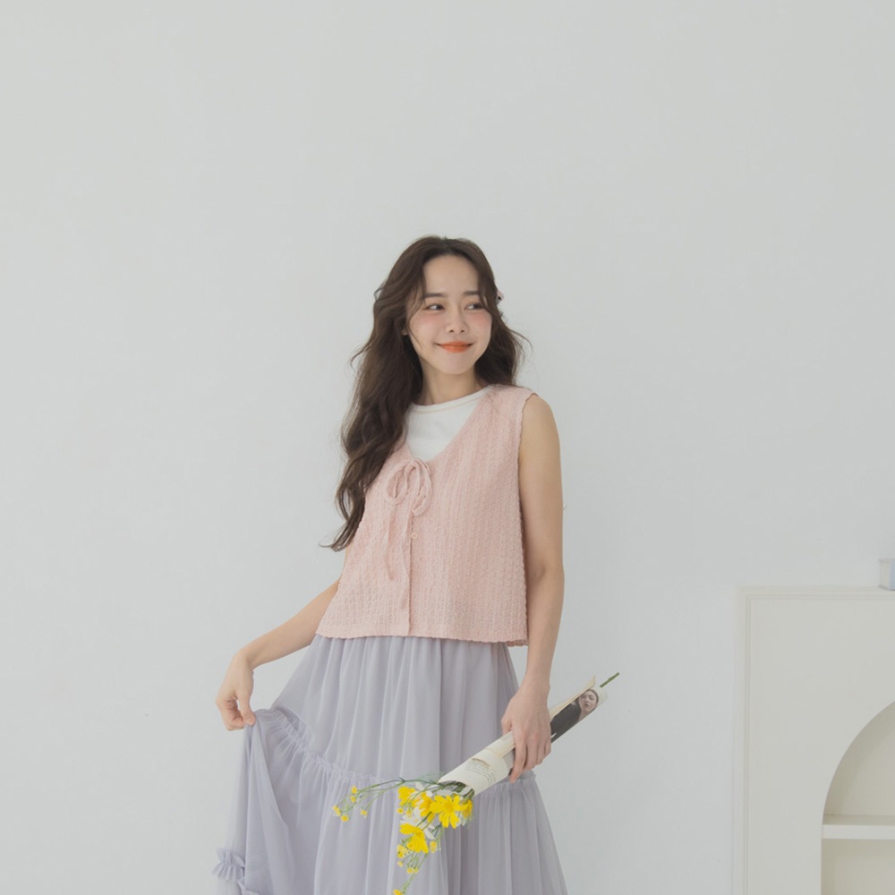 QUEENSHOP_ S 女裝 直條緹花排釦綁帶罩衫背心 四色售 現+預 【01098903】黑|白|粉|藍Tanks & CamisolesQUEENSHOP