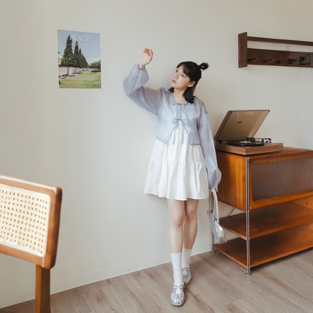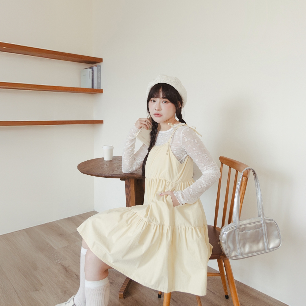 QUEENSHOP_ S 女裝 細肩蝴蝶結綁帶蛋糕短洋裝 四色售 現+預 【01087003】黑|白|藍|黃QUEENSHOP