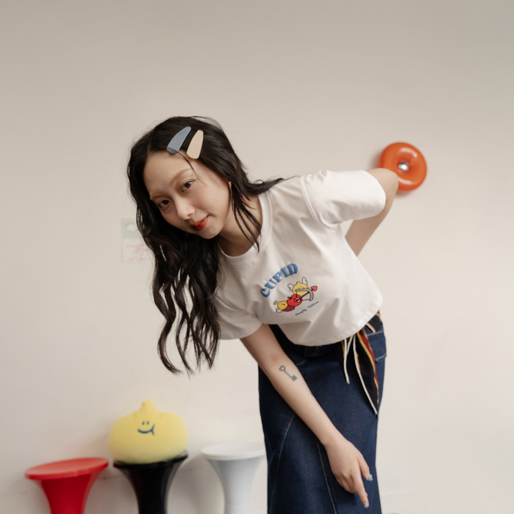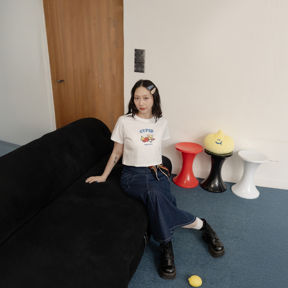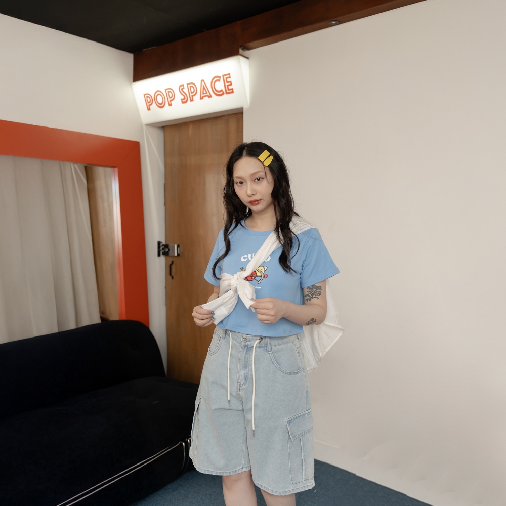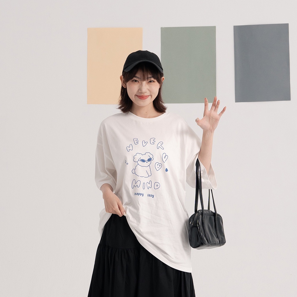 QUEENSHOP_ S 女裝 聯名 Second Morning 泡泡印字短版上衣 兩色售 現+預 【01099052白|藍T-shirtsQUEENSHOP