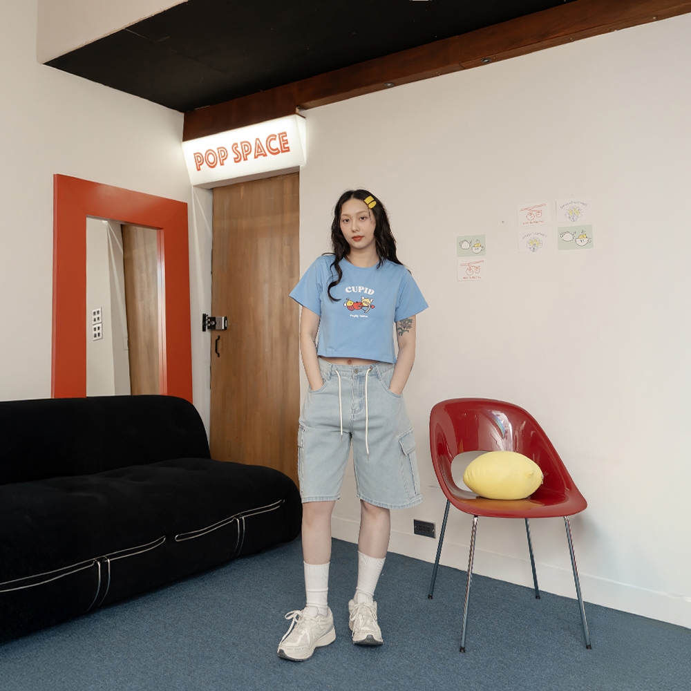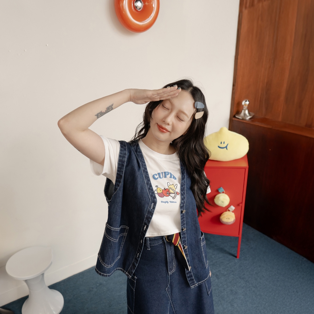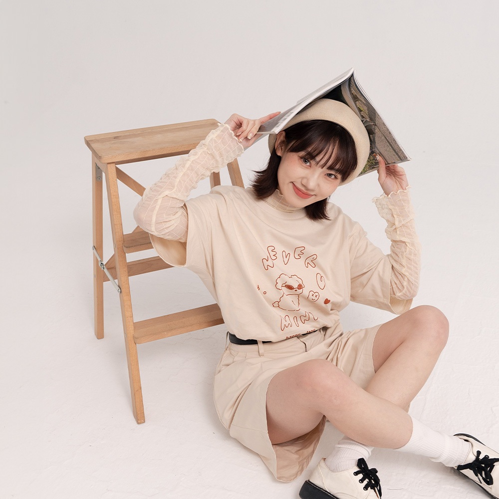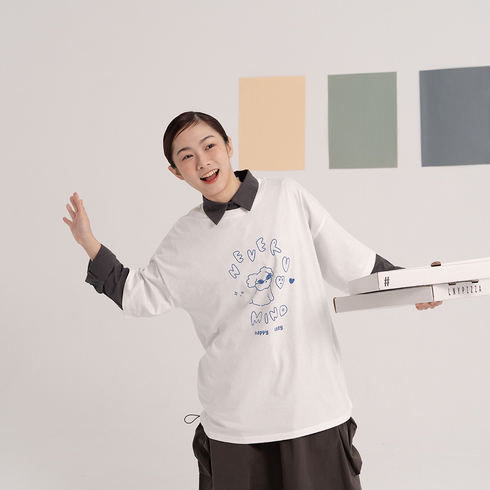 QUEENSHOP_ S 女裝 聯名 Second Morning 泡泡印字短版上衣 兩色售 現+預 【01099052白|藍T-shirtsQUEENSHOP