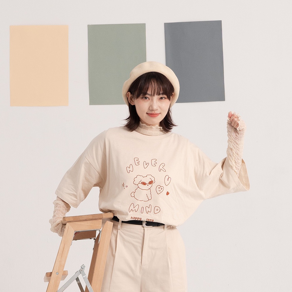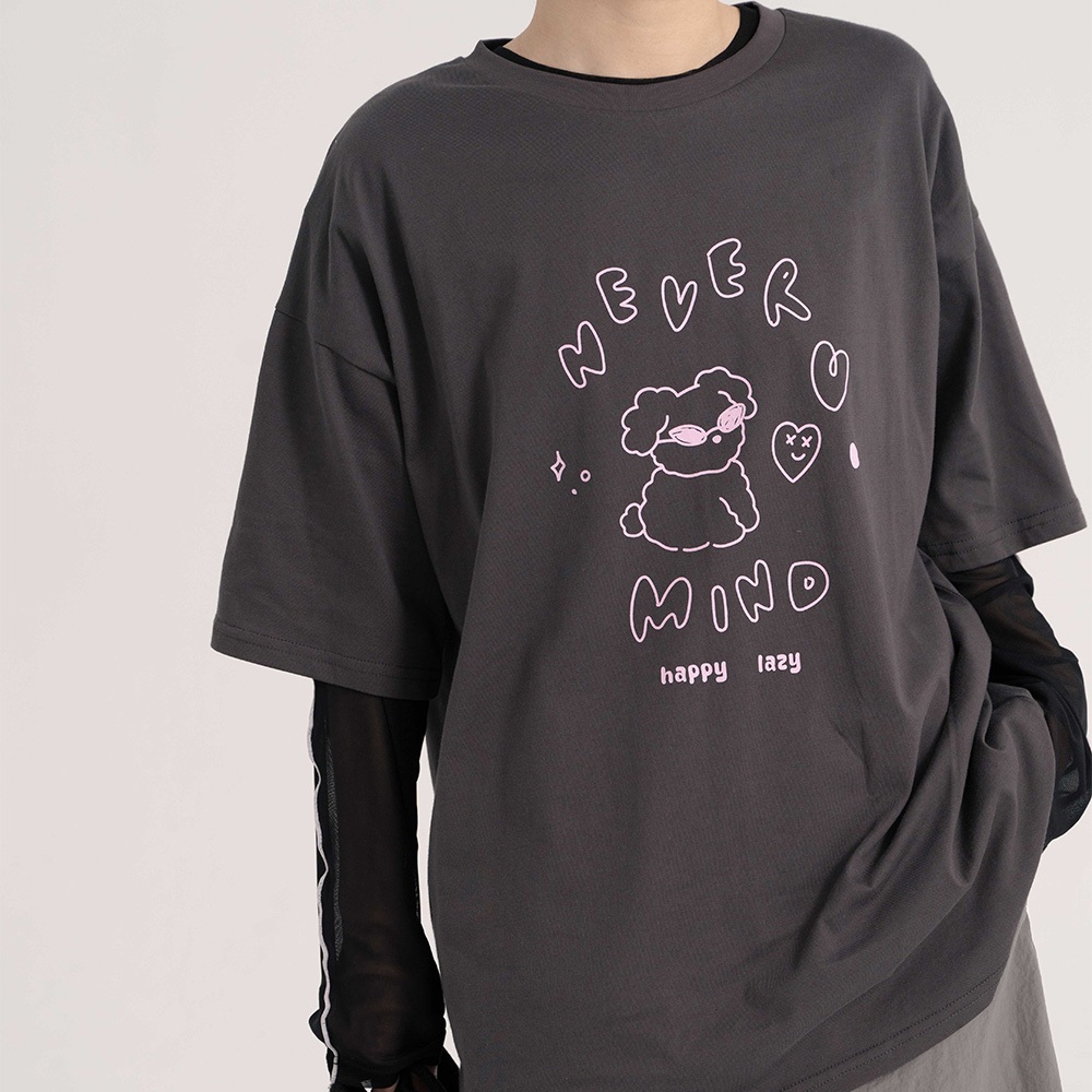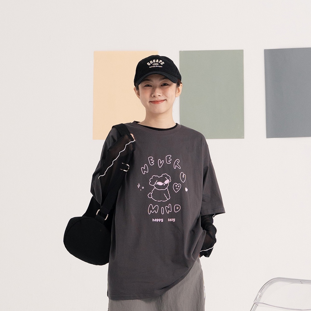 QUEENSHOP_ S 女裝 短袖 線條墨鏡小狗印圖短袖上衣 三色售 現+預 【01190217】米白|深灰T-shirtsQUEENSHOP