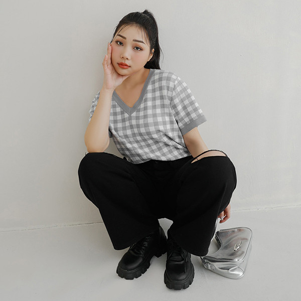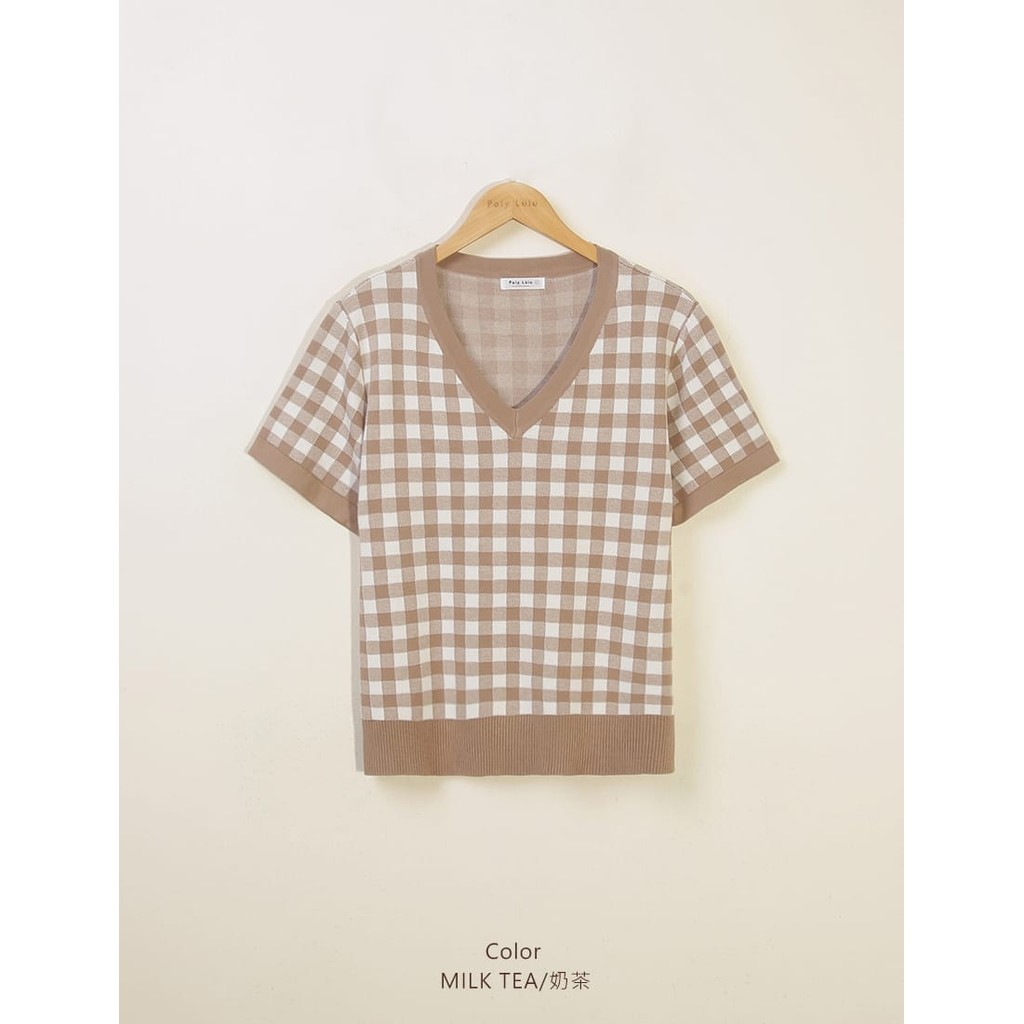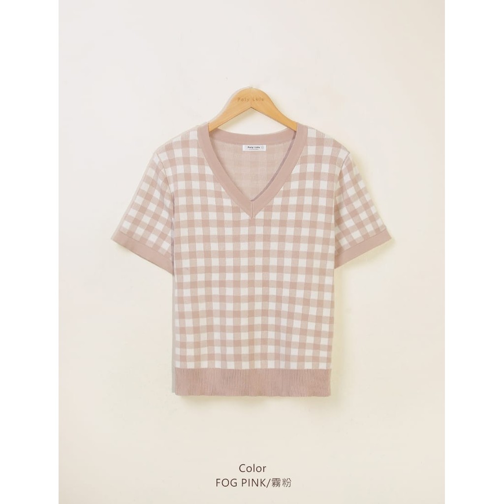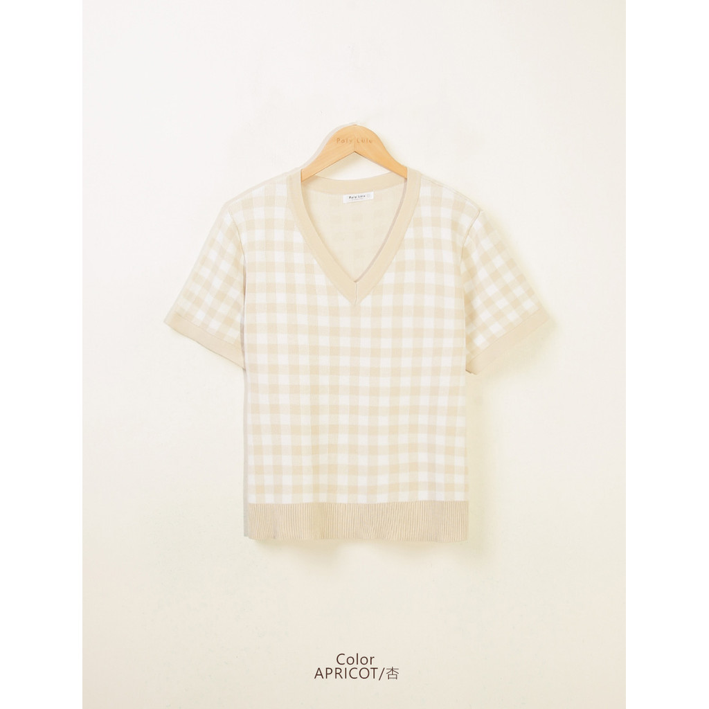 【PolyLulu】 格紋V領針織短袖上衣 中大尺碼上衣灰藍色,L|杏色,L|霧粉色,XL|霧粉色,2XL|灰藍色,3XL|杏色,XL|奶茶色,3XL|杏色,2XL|杏色,3XL|奶茶色,XL|霧粉色,L|霧粉色,3XL|灰藍色,XL|灰藍色,2XL|奶茶色,L|奶茶色,2XLPOLY LULU丨BEAUTY HAS NO SIZE 中大尺碼女裝