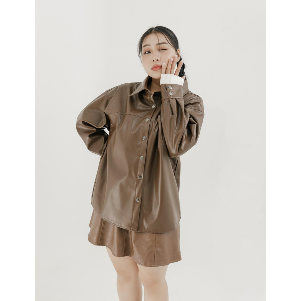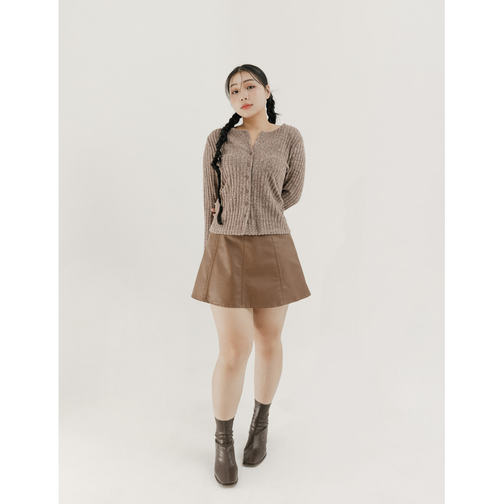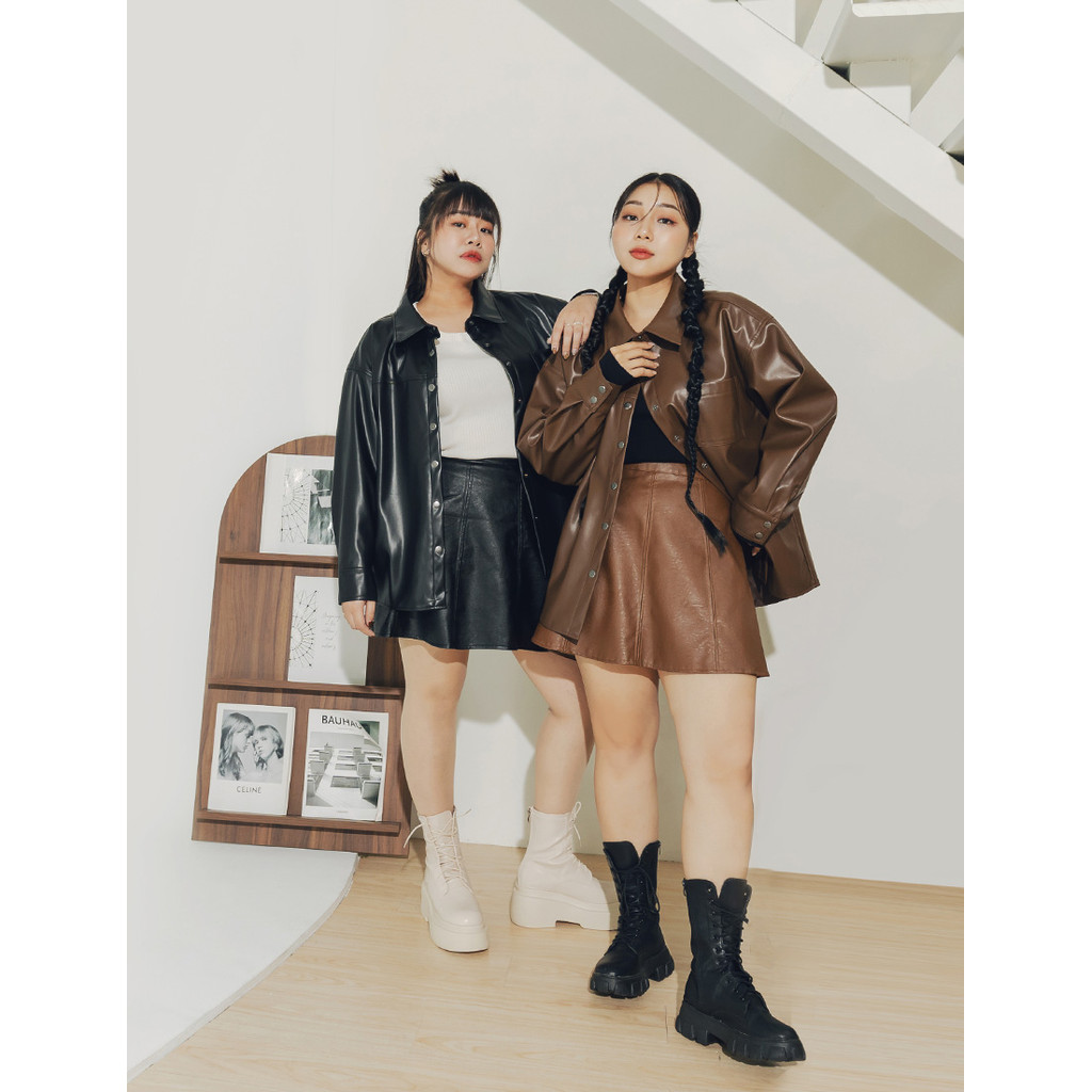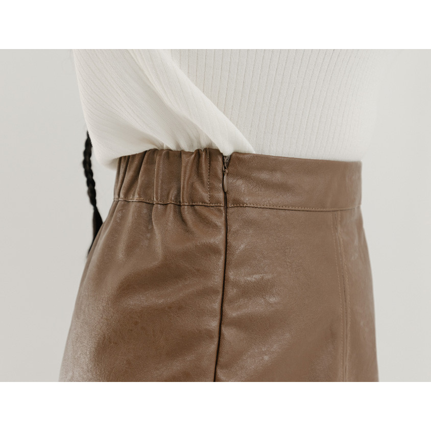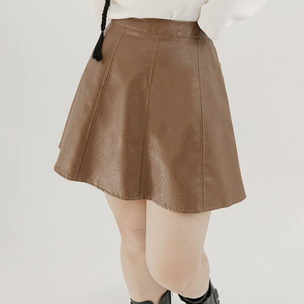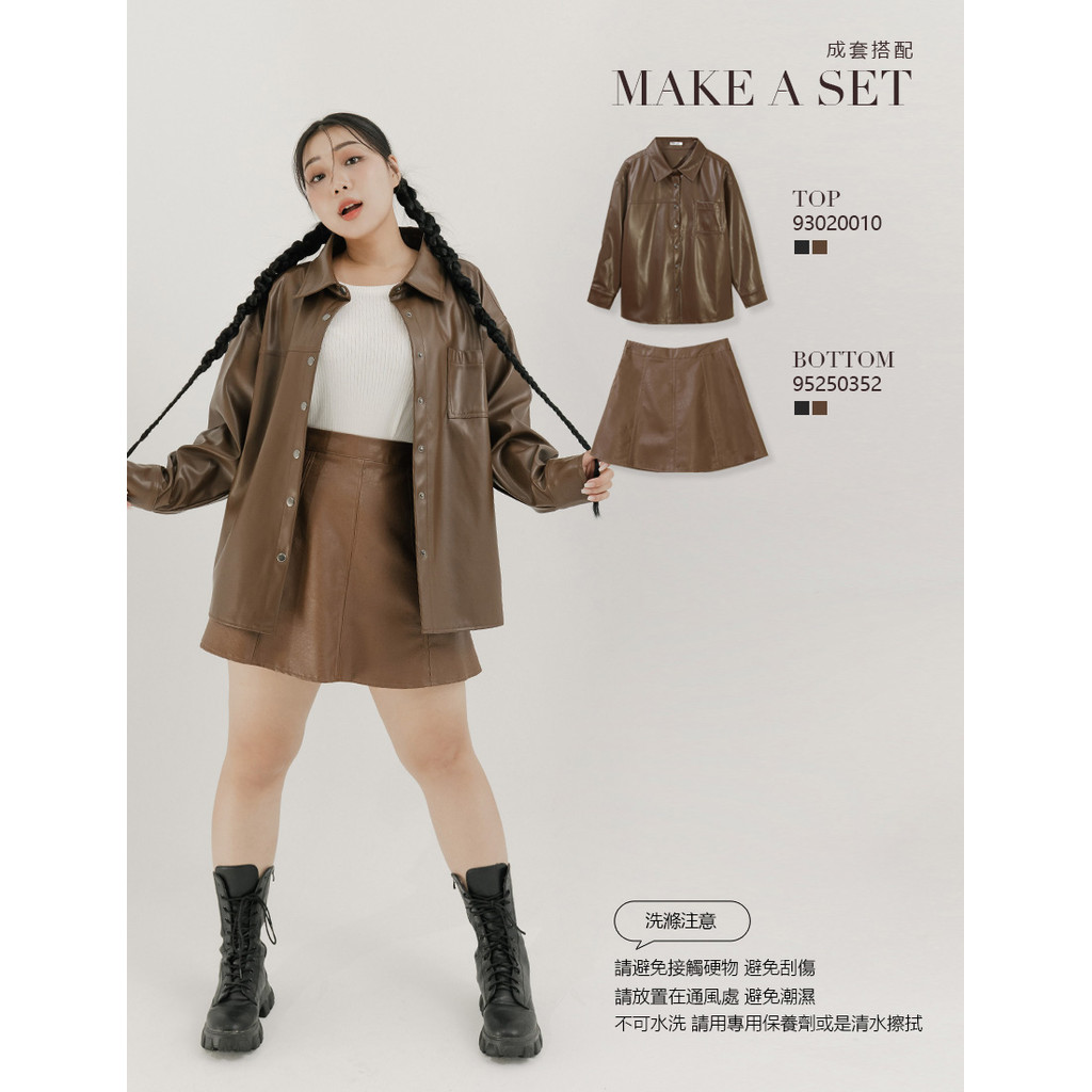 【PolyLulu】 甜酷微波浪車線後鬆緊A字皮革短裙(附褲) 中大尺碼裙子 咖啡色L|XL|2XL|3XLPOLY LULU丨BEAUTY HAS NO SIZE 中大尺碼女裝