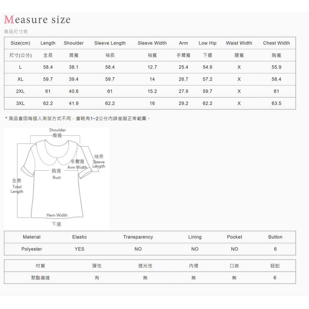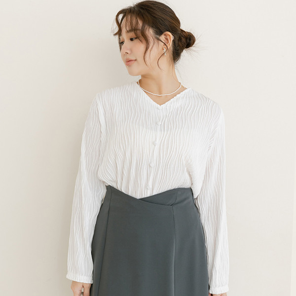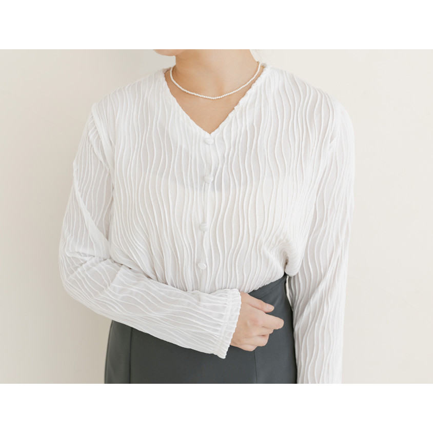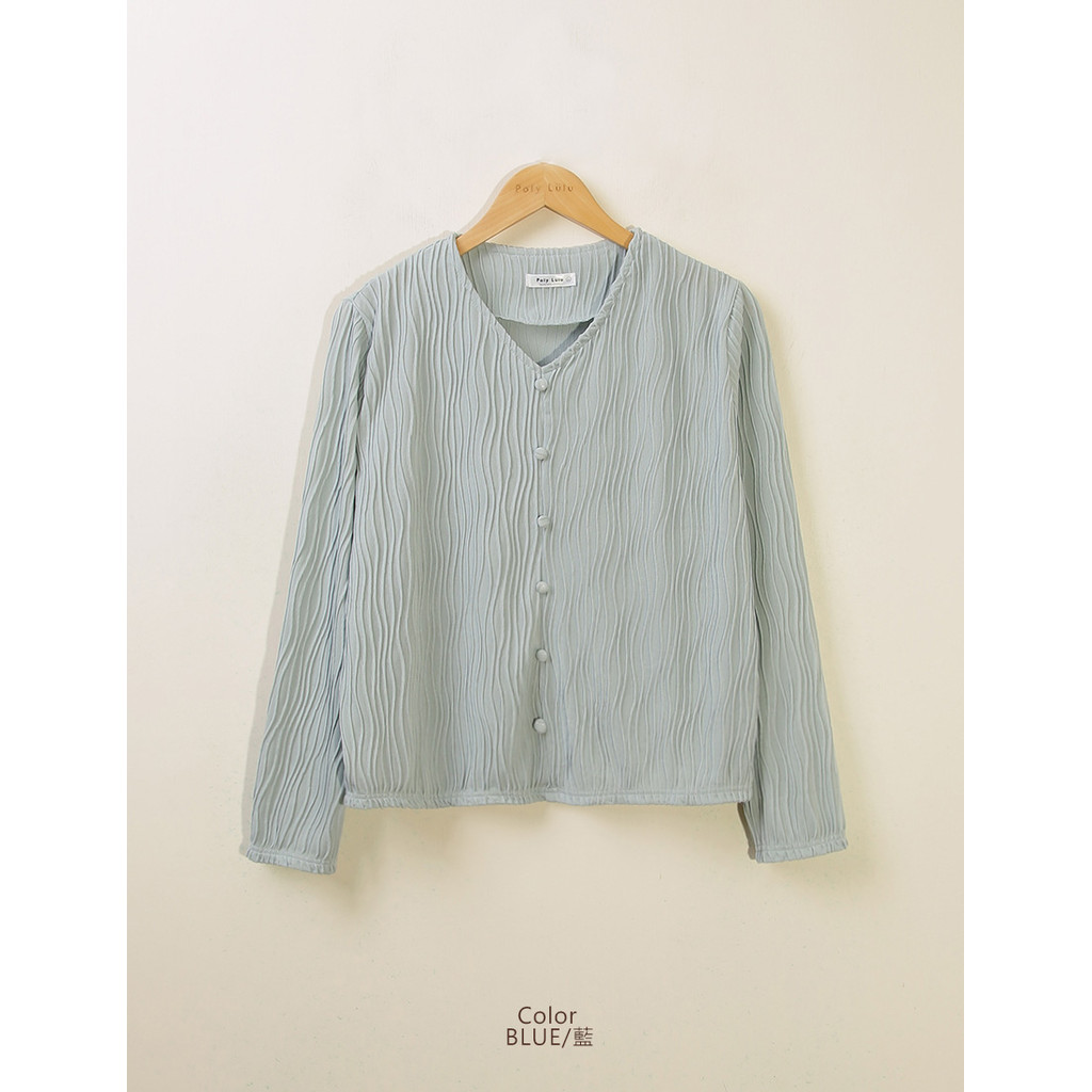 【PolyLulu】 MISS.歐膩V領波浪坑條假排釦長袖上衣 中大尺碼上衣白色,3XL|藍色,L|藍色,XL|藍色,2XL|藍色,3XL|白色,L|白色,XL|白色,2XLOthersPOLY LULU丨BEAUTY HAS NO SIZE 中大尺碼女裝