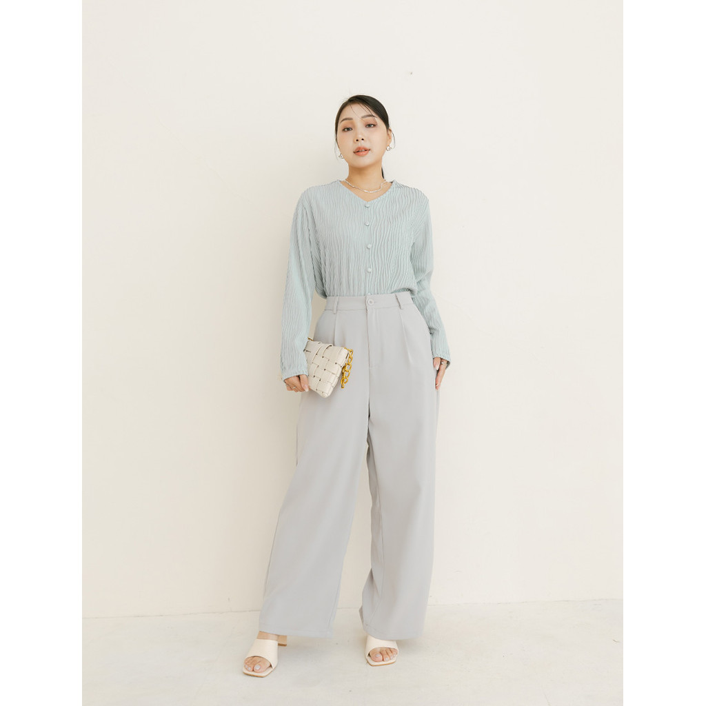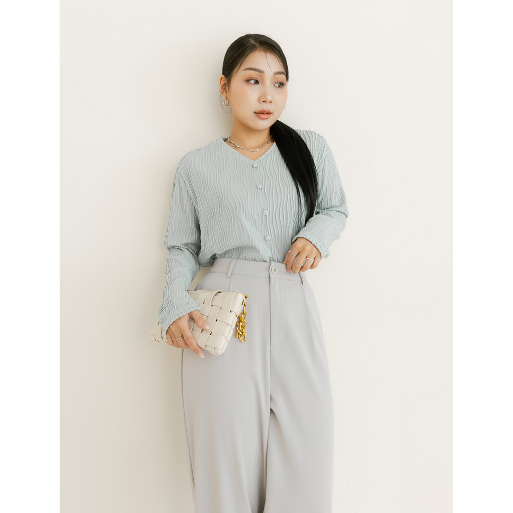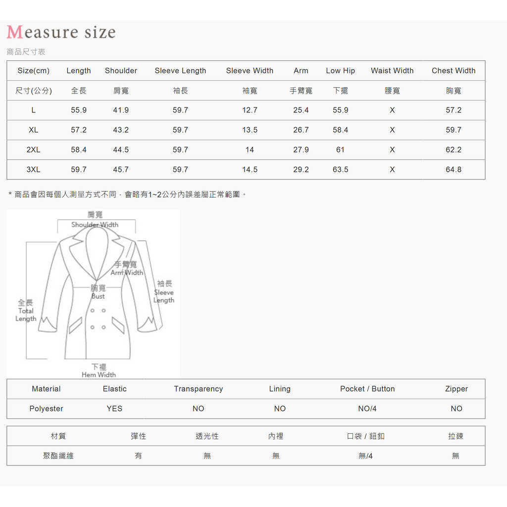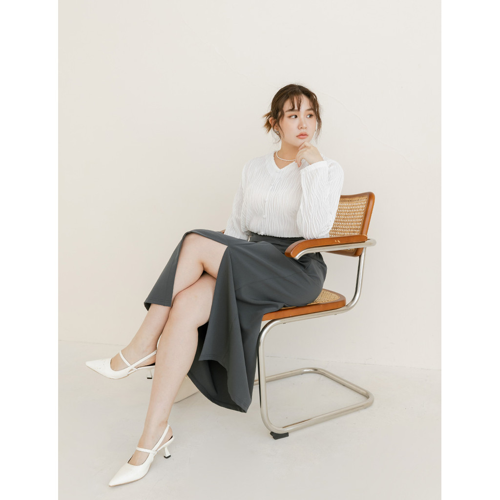 【PolyLulu】 MISS.歐膩V領波浪坑條假排釦長袖上衣 中大尺碼上衣白色,3XL|藍色,L|藍色,XL|藍色,2XL|藍色,3XL|白色,L|白色,XL|白色,2XLOthersPOLY LULU丨BEAUTY HAS NO SIZE 中大尺碼女裝
