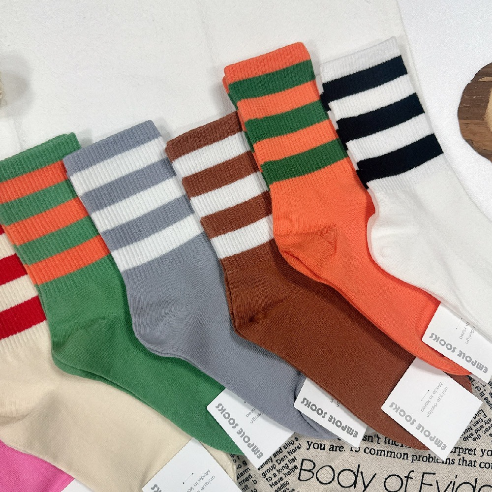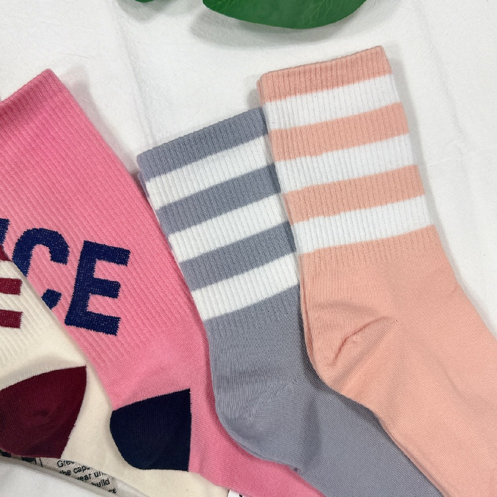 【OTOBAI】韓國襪子 條紋襪子 韓國襪 襪子 女生襪子 韓國長襪 可愛襪子 笑臉襪 微笑襪子 中筒襪 英文字襪