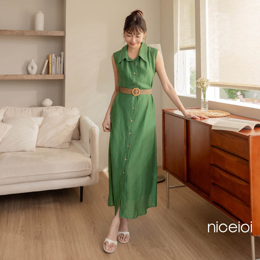 niceioi 清新森林系壓褶翻領洋裝(附綁帶) 女裝綠,S|綠,M|綠,L|綠,XLniceioi 官方旗艦店