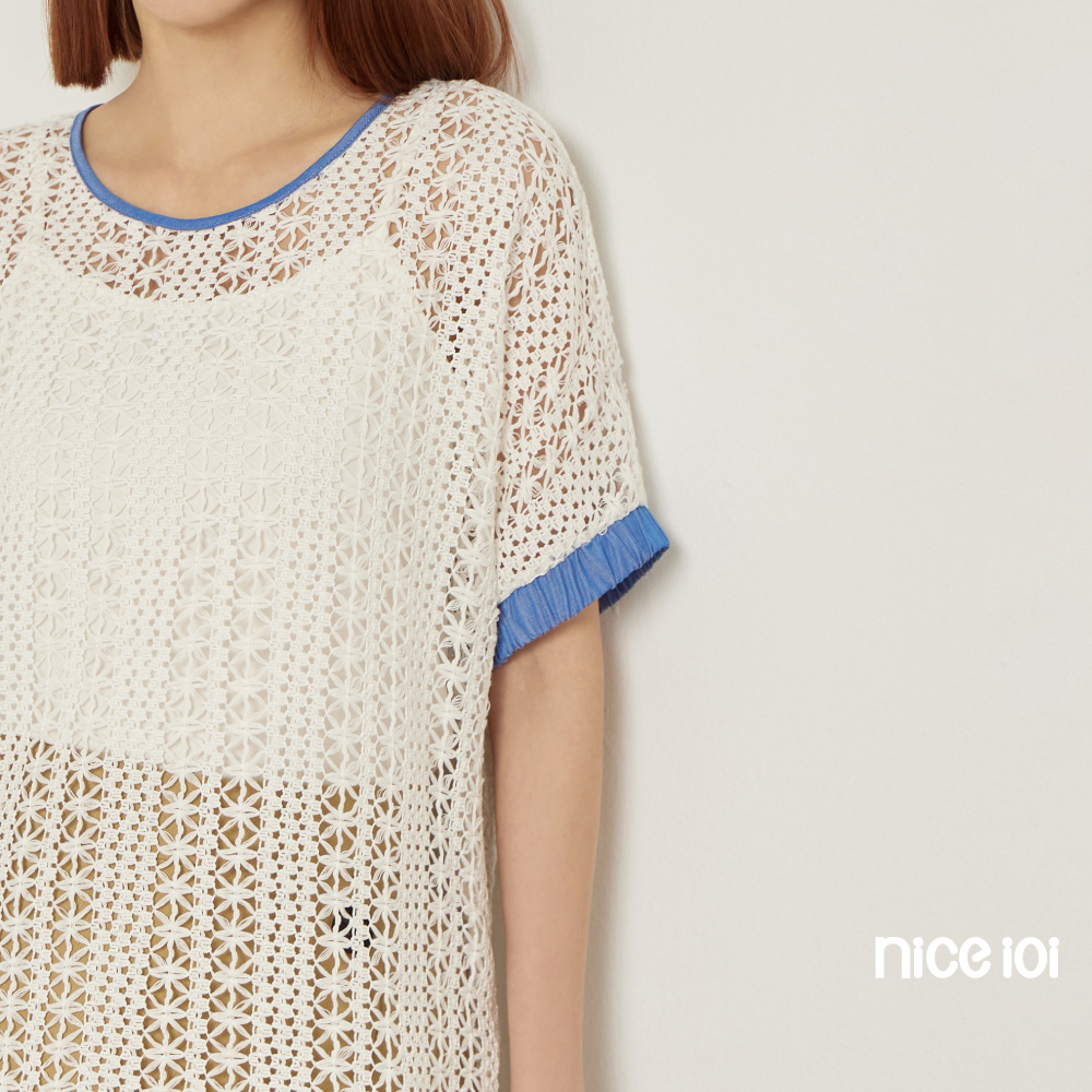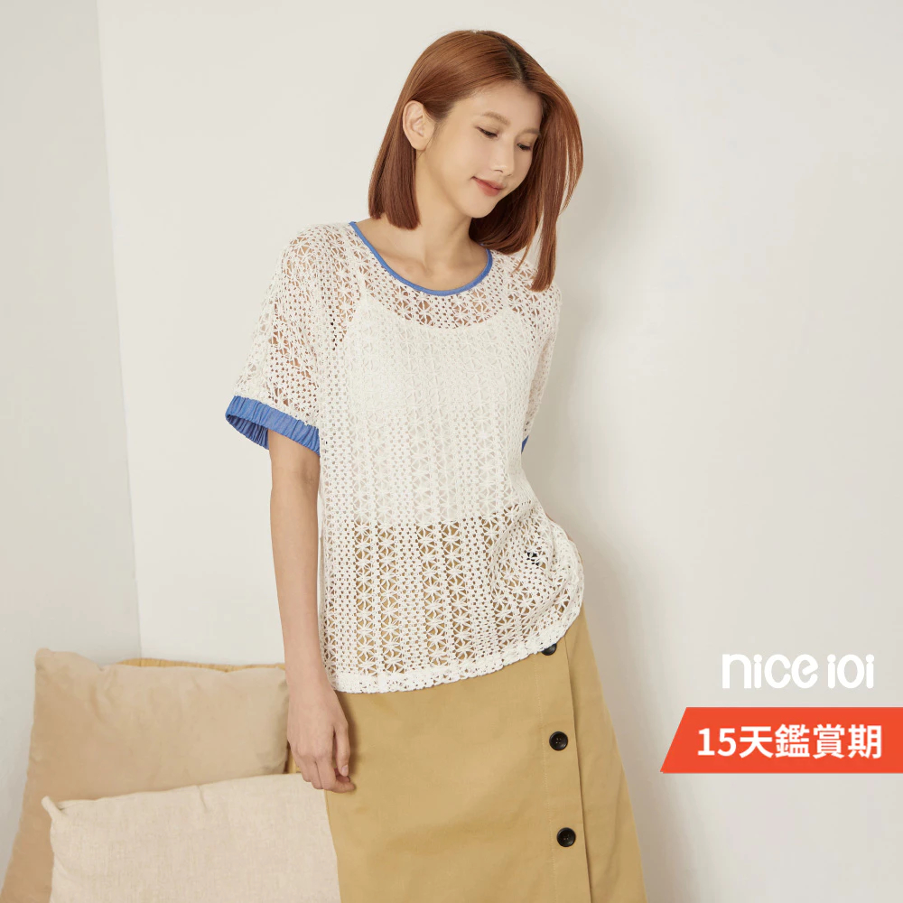 niceioi【特惠】度假風鏤空緹花落肩上衣 鏤空上衣 落肩上衣 圓領上衣 女裝白,S|白,M|白,LT-shirtsniceioi 官方旗艦店