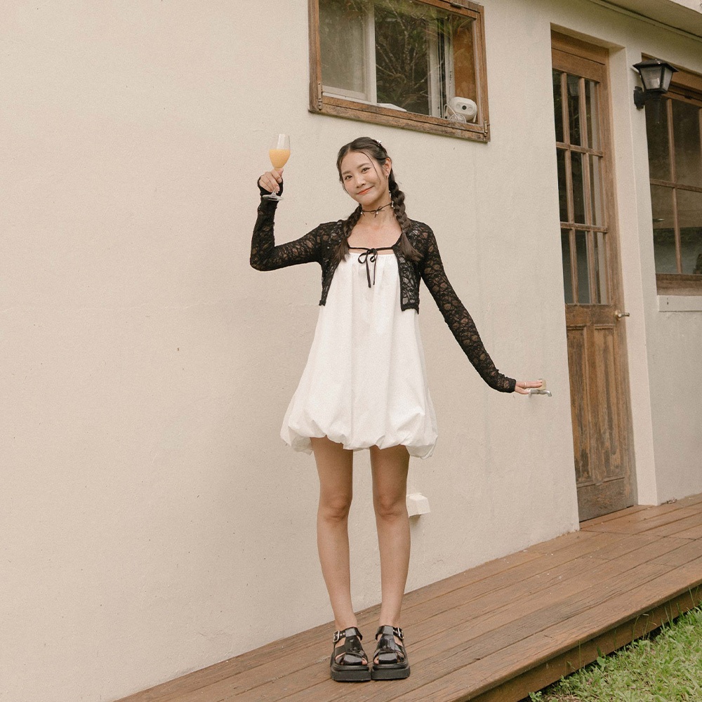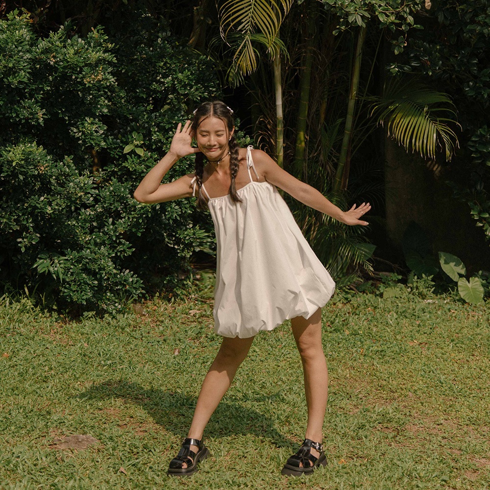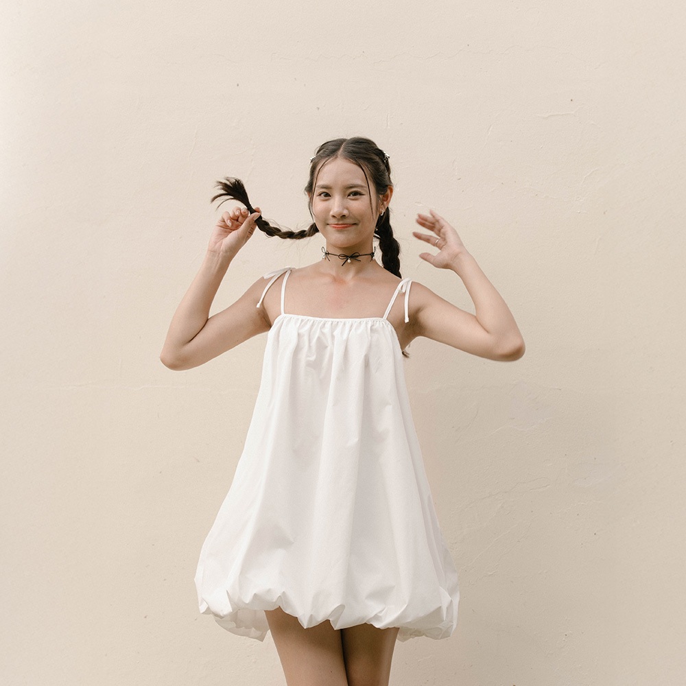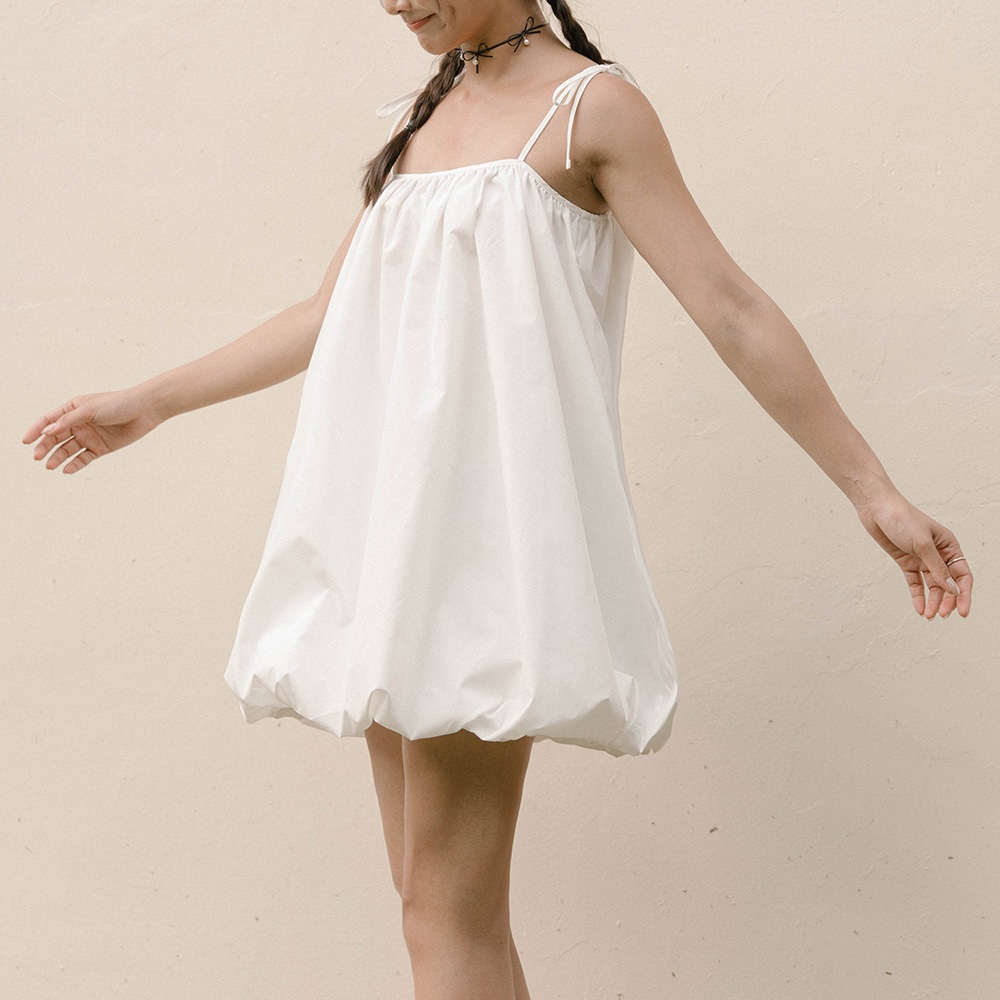 QUEENSHOP_ S 品子聯名 綁帶細肩花苞造型短洋裝-白S/M 現+預 【01087121】白M|白SQUEENSHOP